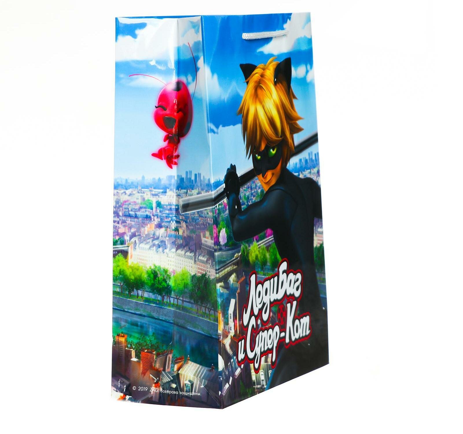 Пакет подарочный «Леди Баг и Супер-Кот», 220х310х100, голубой