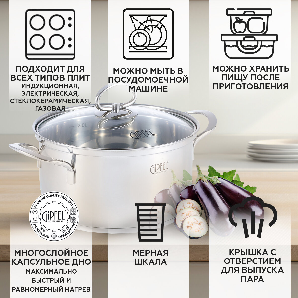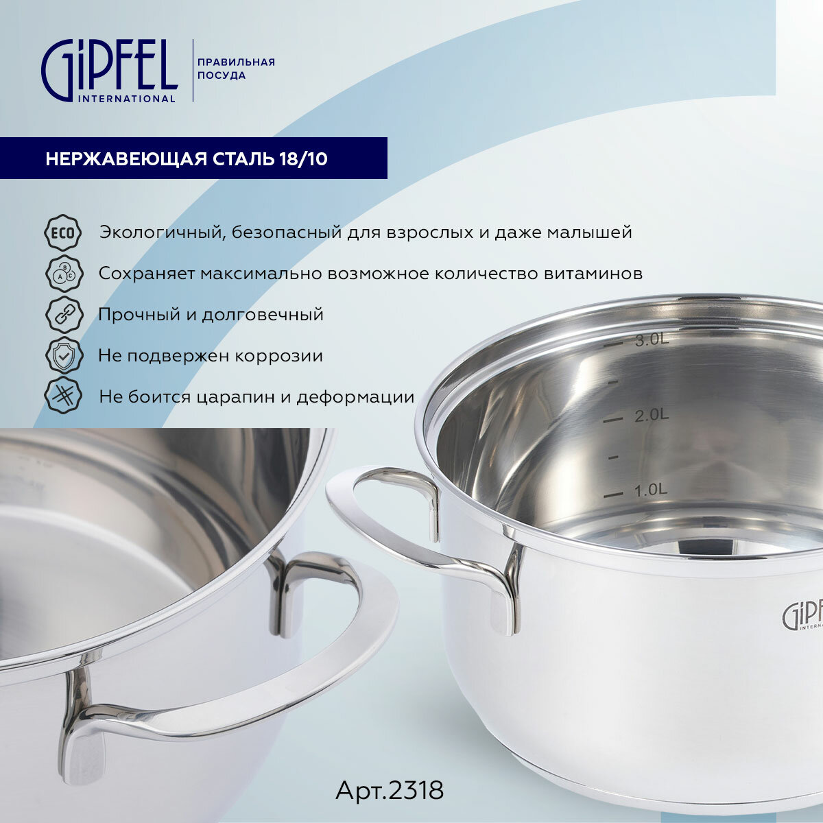 Кастрюля из нержавеющей стали Gipfel Sofia 2318 20 см/3,1 л стальной интересное:
