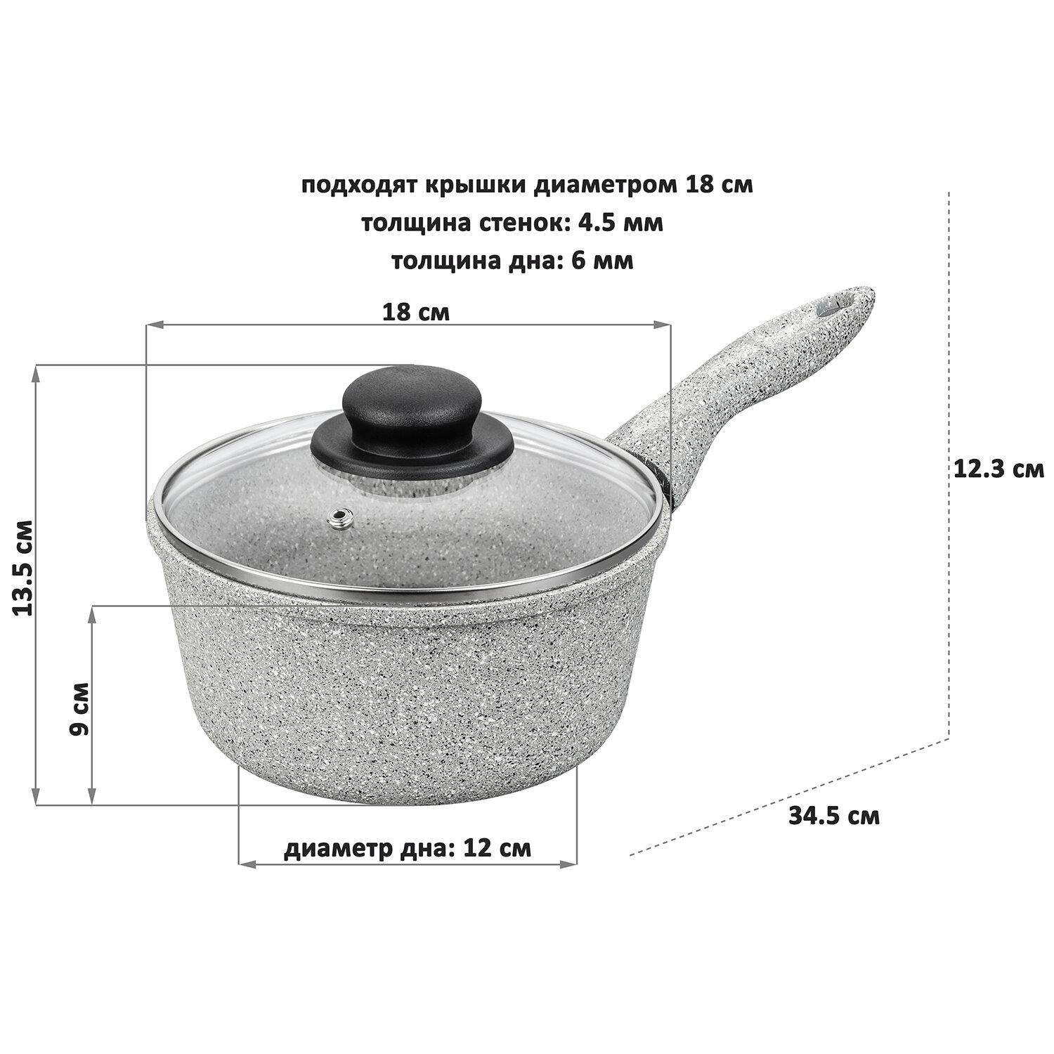 Ковш 1,5 л Elan Gallery гармония вкуса Серый мрамор ковшик кухонный с крышкой толстостенный из литого алюминия с двухслойным антипригарным покрытием с несъемной ручкой Идеальный подарок на Новый год Рождество День Рождения и 8 марта