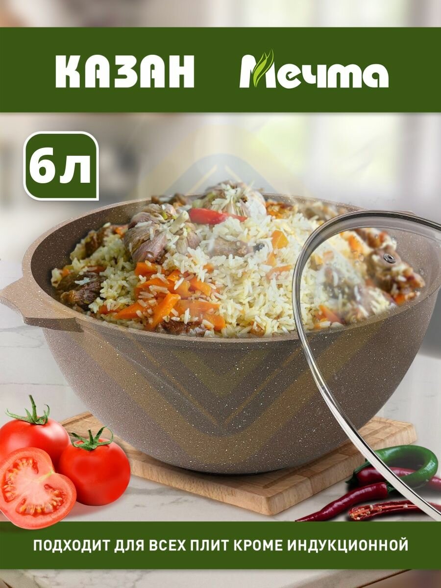 Казан для плова Мечта 8 л Гранит с антипригарным покрытием с крышкой, НЕ индукционный