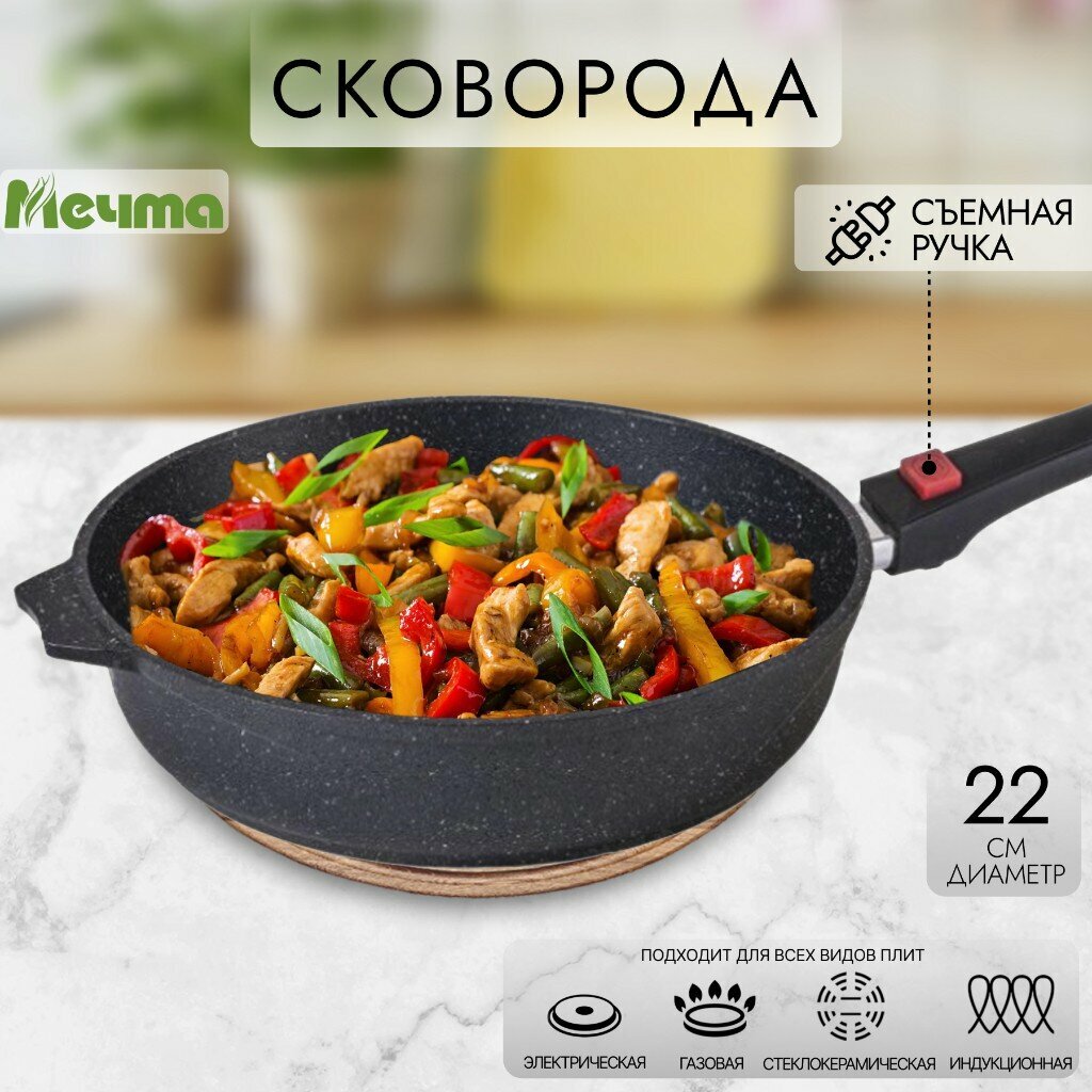 Купить Сковорода антипригарная 22 см со съемной ручкой индукция, Мечта