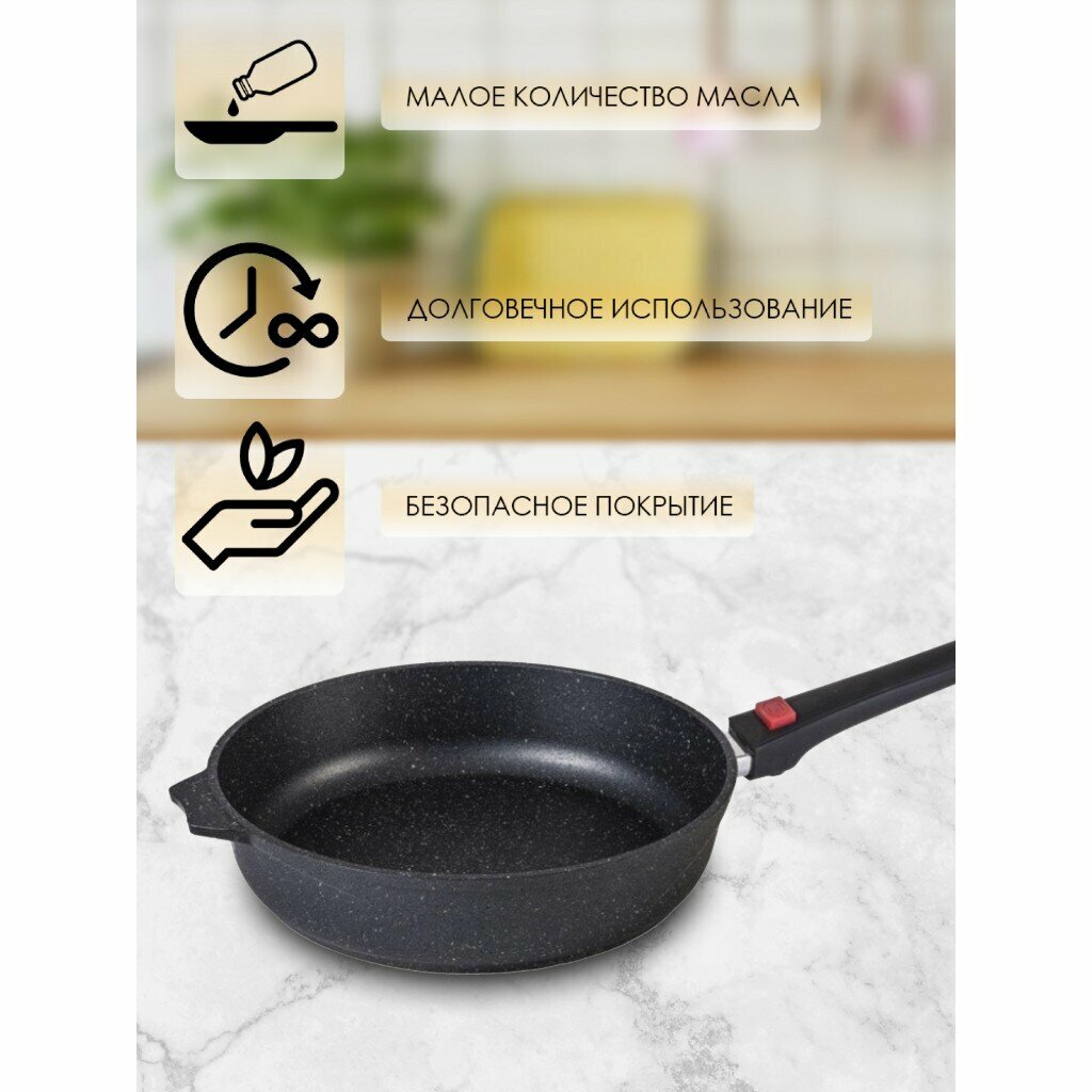 Сковорода со съемной ручкой Гранит black, 22см