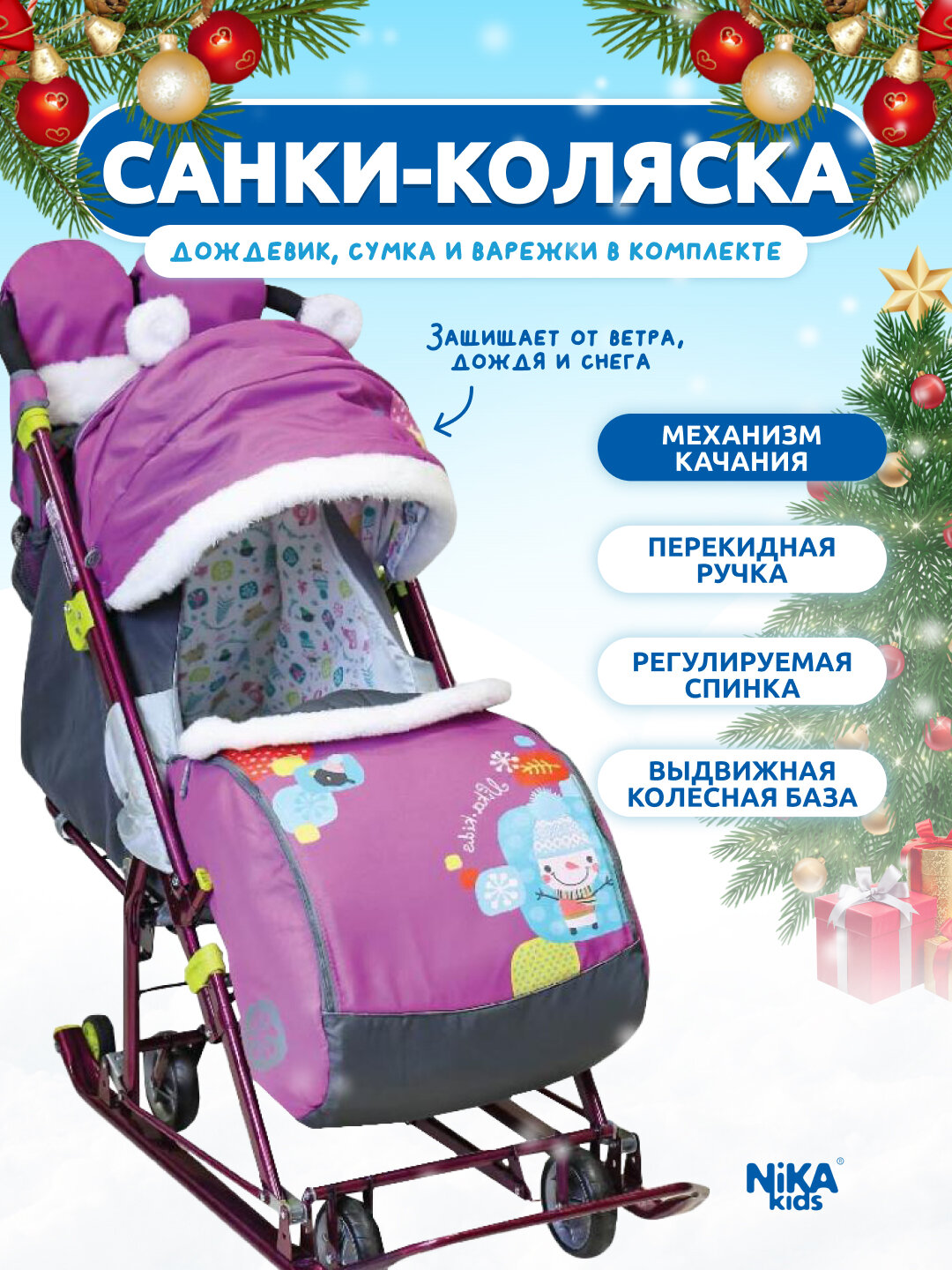 Nika Kids Санки-коляска «Ника детям 7-6», со щенком, цвет орхидея