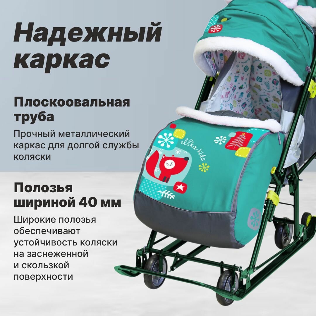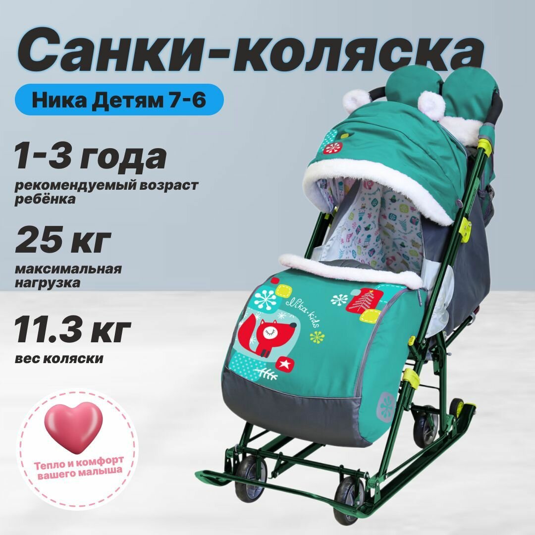 Купить Санки-коляска Nika Ника-детям 7-6 НД7-6, с лисичкой изумруд