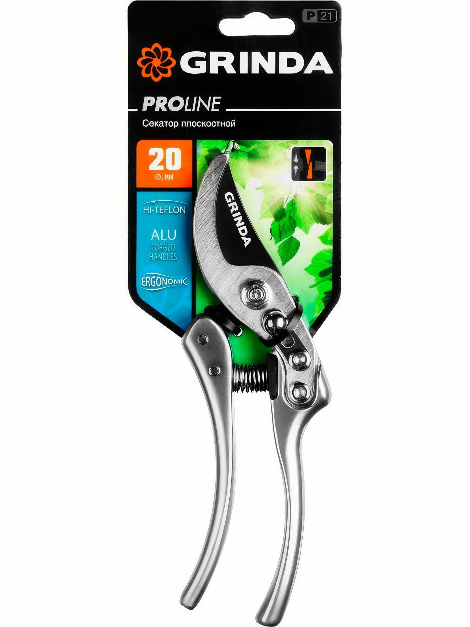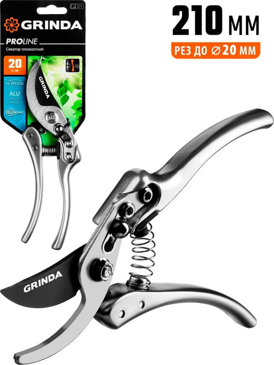 GRINDA P-21, 210 мм, углеродистая сталь, хромированное покрытие, с алюминиевыми коваными рукоятками, плоскостной секатор, PROLine (423421)