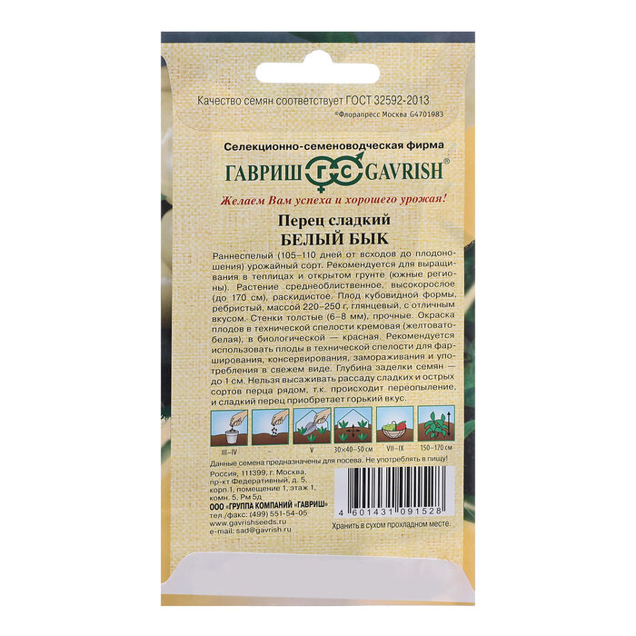 Купить Семена Перец Белый бык 15шт (6-7мм) Ранние (Гавриш) автор