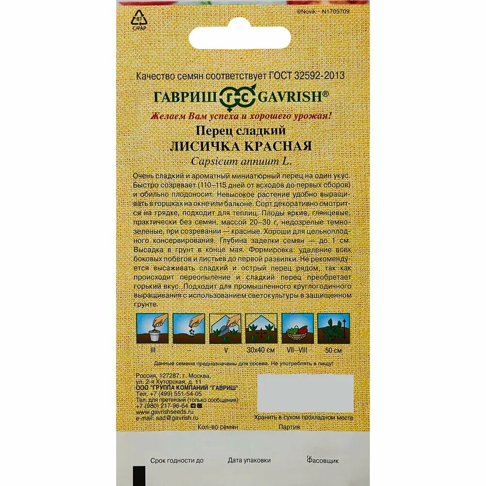 Ниже Вы можете прочитать отзывы на Семена овощей Гавриш перец Лисичка красная 10 шт., ознакомится с подробными характеристиками, посмотреть интересные обзоры и фотографии на Семена овощей Гавриш перец Лисичка красная 10 шт..