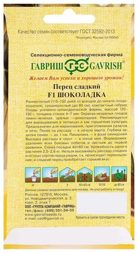 СохранитьСемена Перец сладкий Шоколадка F1, среднеспелый, (гавриш) 10шт интересное: