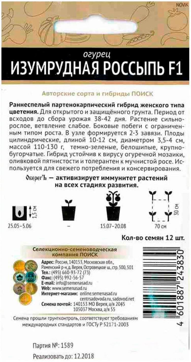Агрохолдинг Поиск Семена Огурец Изумрудная россыпь F1 А Авторские сорта и гибриды 12 шт Поиск