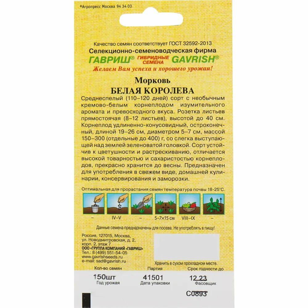 СохранитьСемена Морковь Белая Королева 150шт (Гавриш) автор интересное: