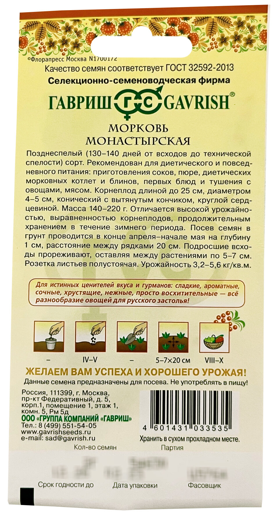 СохранитьСемена Морковь Монастырская 2г Поздние (Гавриш) Русский вкус интересное: