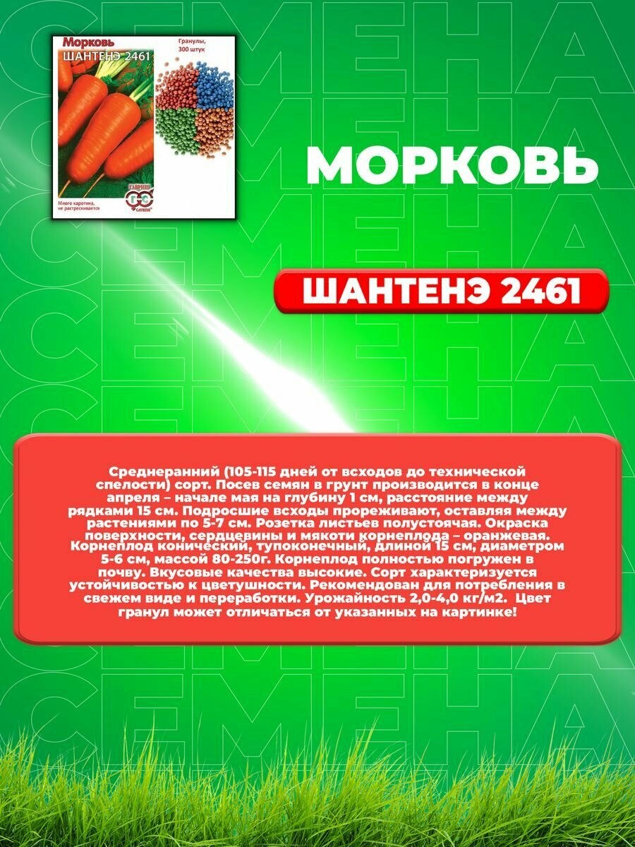Ниже Вы можете прочитать отзывы на Семена Морковь гранулированная Шантенэ 2461 300шт Ранние (Гавриш), ознакомится с подробными характеристиками, посмотреть интересные обзоры и фотографии на Семена Морковь гранулированная Шантенэ 2461 300шт Ранние (Гавриш).