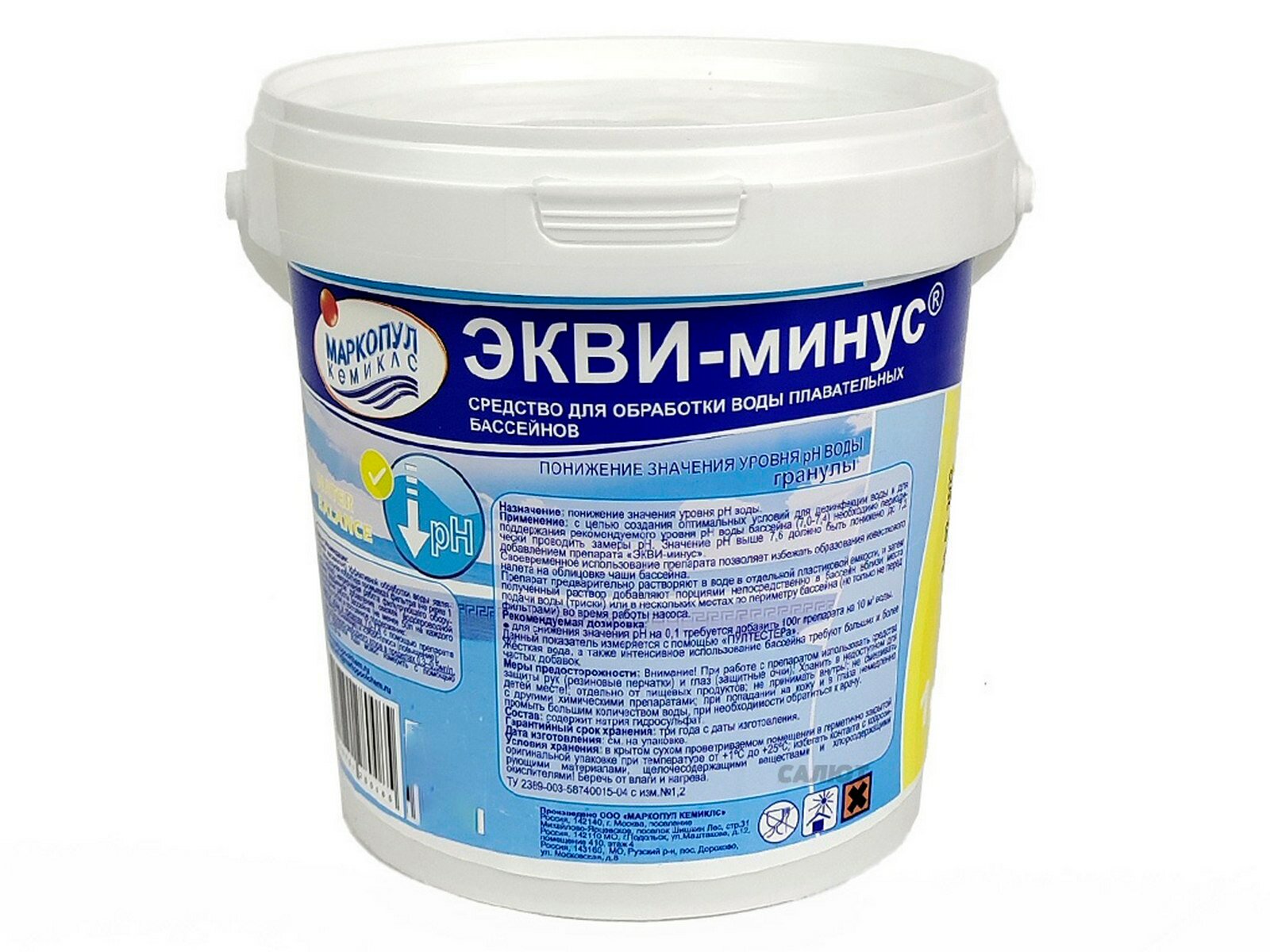 Экви-минус 1кг. порошок, ведро. Средство для басейнов, регулировка рН. Маркопул кемиклс