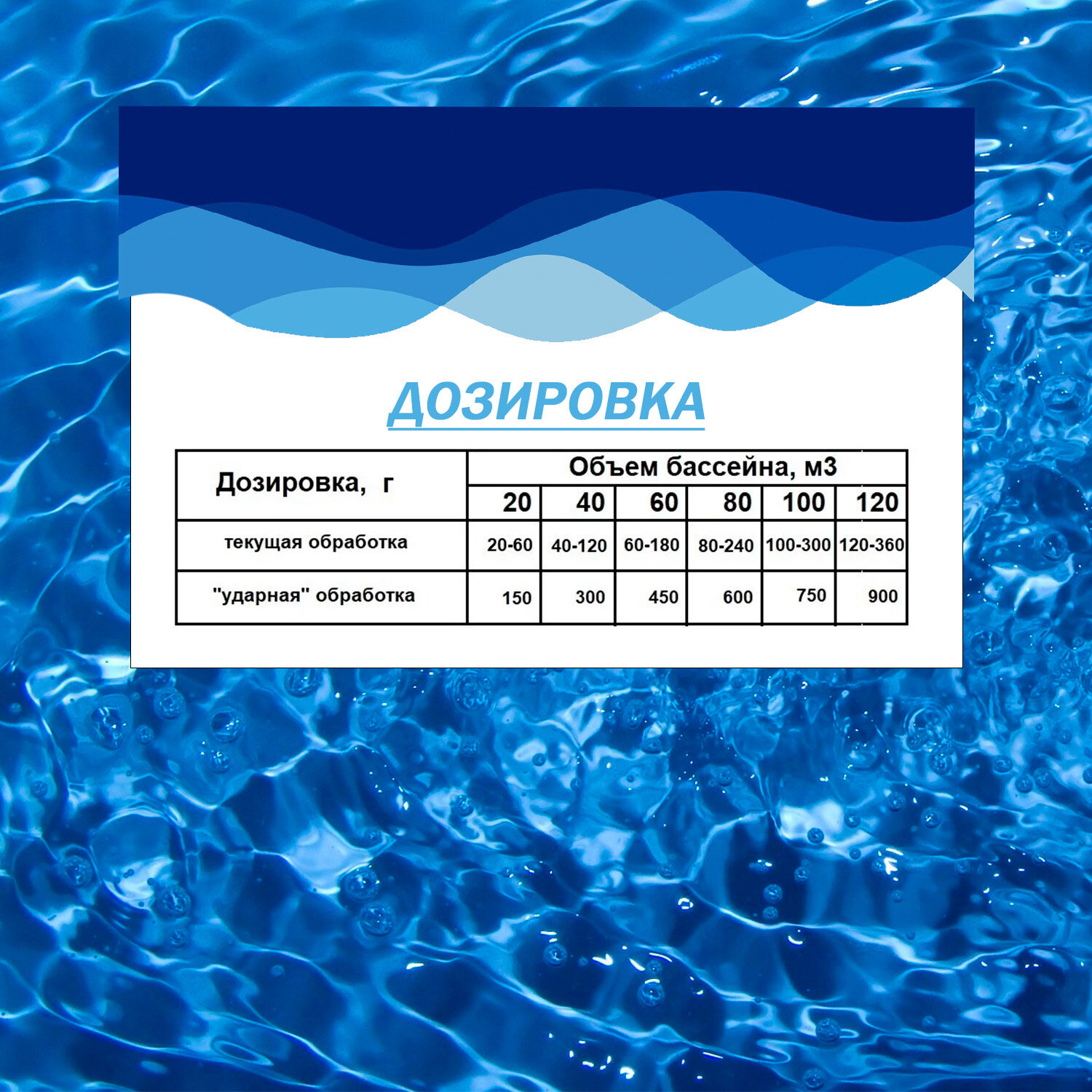 | Отзыв: | Добавлял по инструкцие ударную дозу, вода прозрачная и не цветет. |
