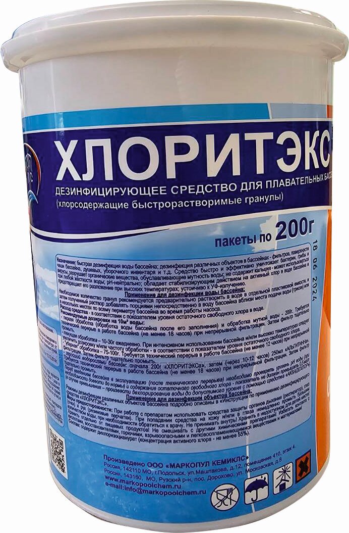 Хлор для бассейна Хлоритэкс 200 гр, гранулы для очистки воды Маркопул кемиклс
