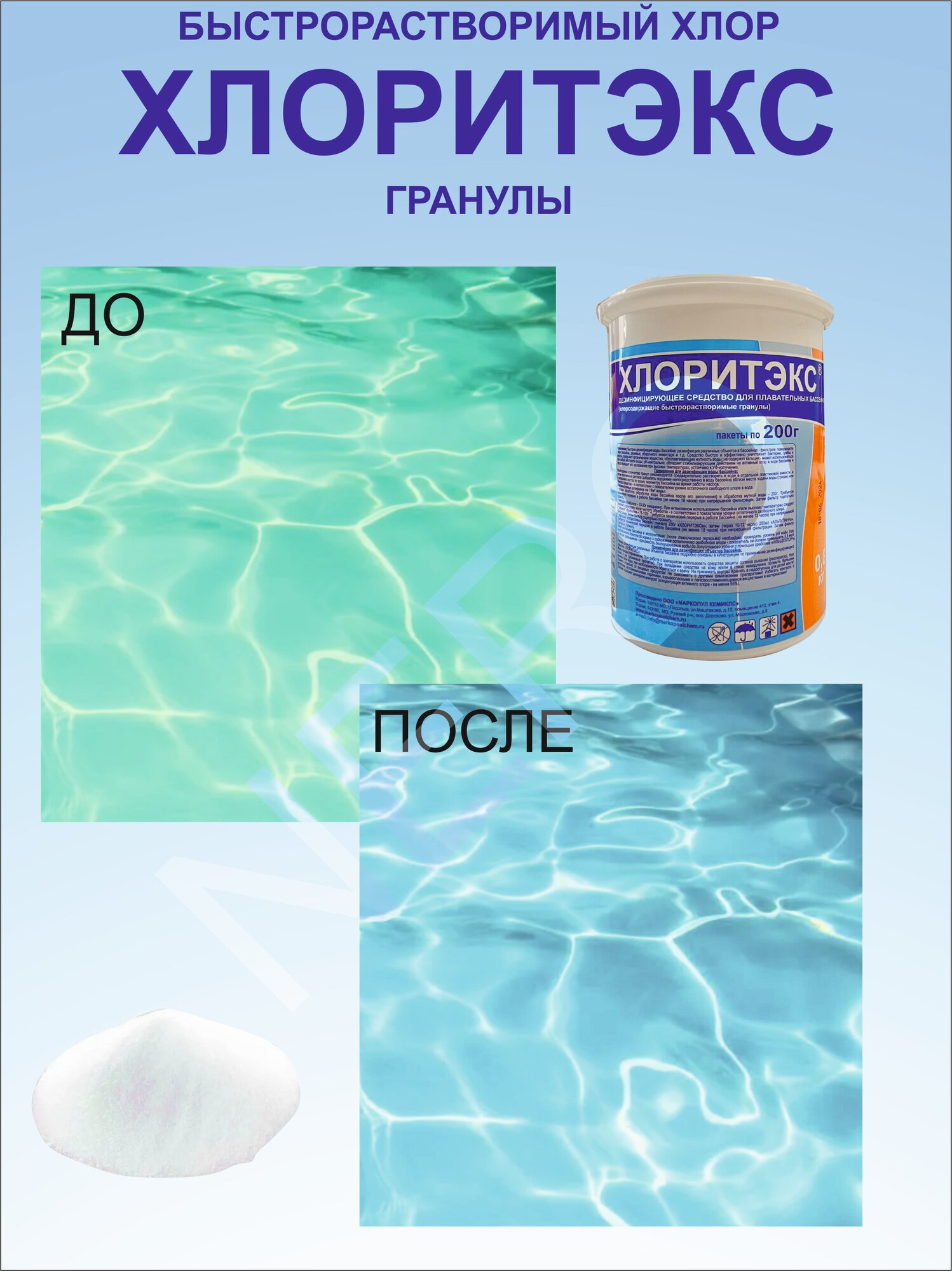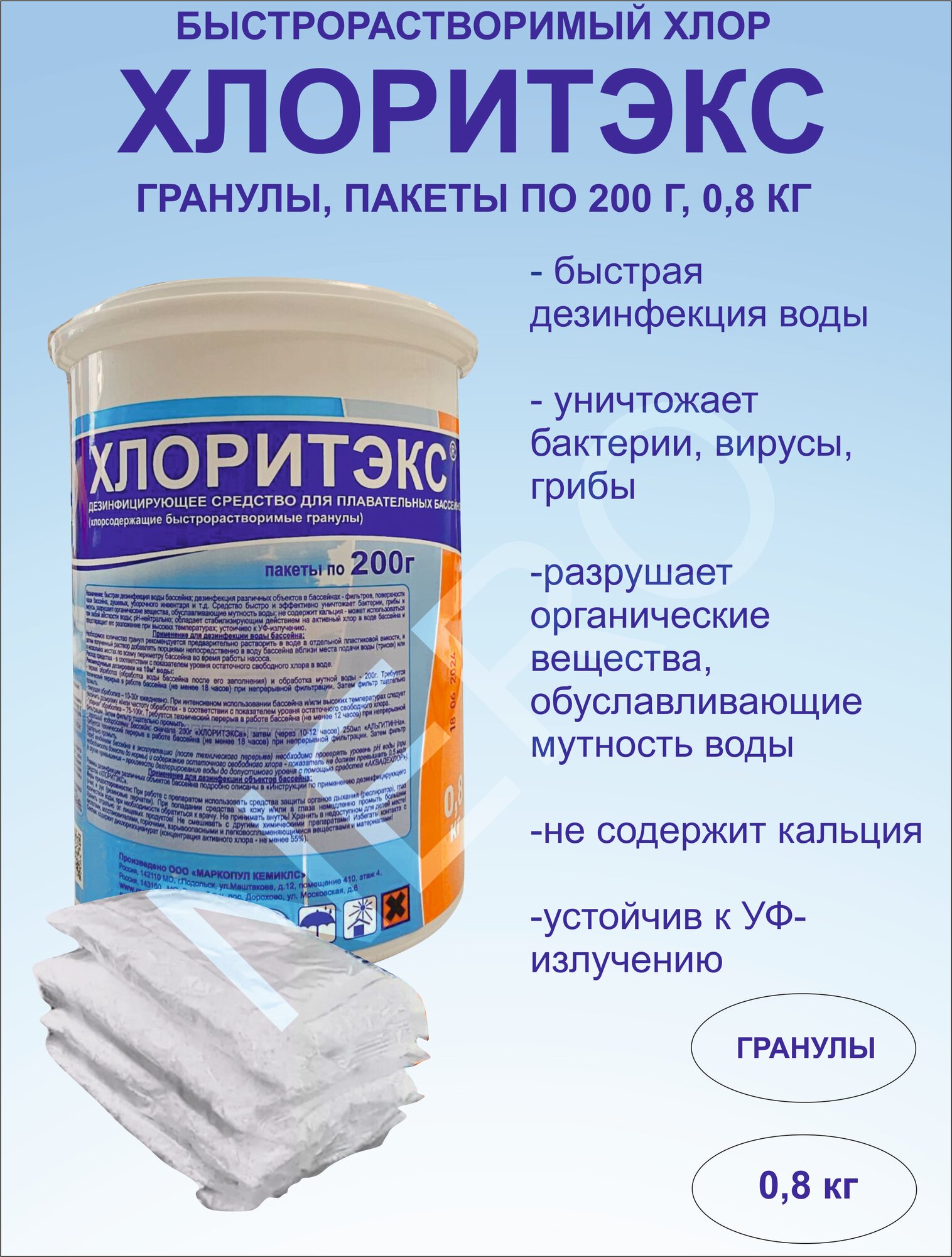 Гранулированный быстрорастворимый органический хлоросодержащий препарат маркопул кемиклс Кемиклс Хлоритекс,