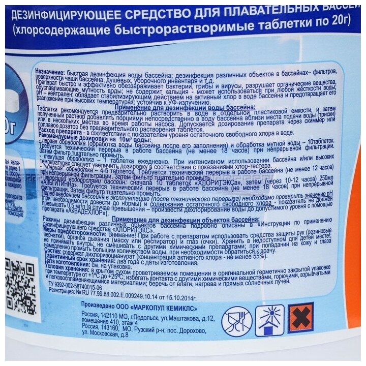 Хлор для бассейна Хлоритэкс 200 гр, гранулы для очистки воды Маркопул кемиклс