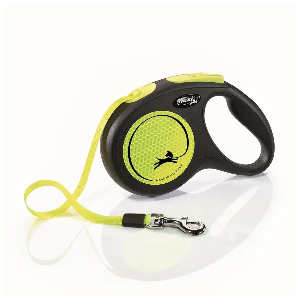 Поводок-рулетка для собак Flexi Neon New Classic со светоотражающей лентой (L) 5 м./до 50 кг. (желтый неон, лента)