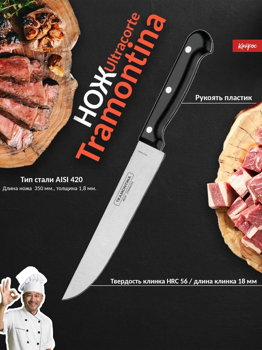 Ниже Вы можете прочитать отзывы на Нож кухонный 18 см, Tramontina Ultracorte, ознакомится с подробными характеристиками, посмотреть интересные обзоры и фотографии на Нож кухонный 18 см, Tramontina Ultracorte.