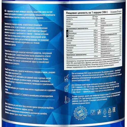 | Плюсы: | Вкус отличный. Есть маленькие кусочки ягод. Действенный. При правильном применении и питании гейнер неплохо помогает в профиците калорий. Как по мне данный продукт качественный. |