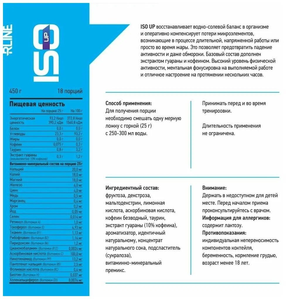 Rline Iso Up с кофеином и таурином (450 г) Клубника