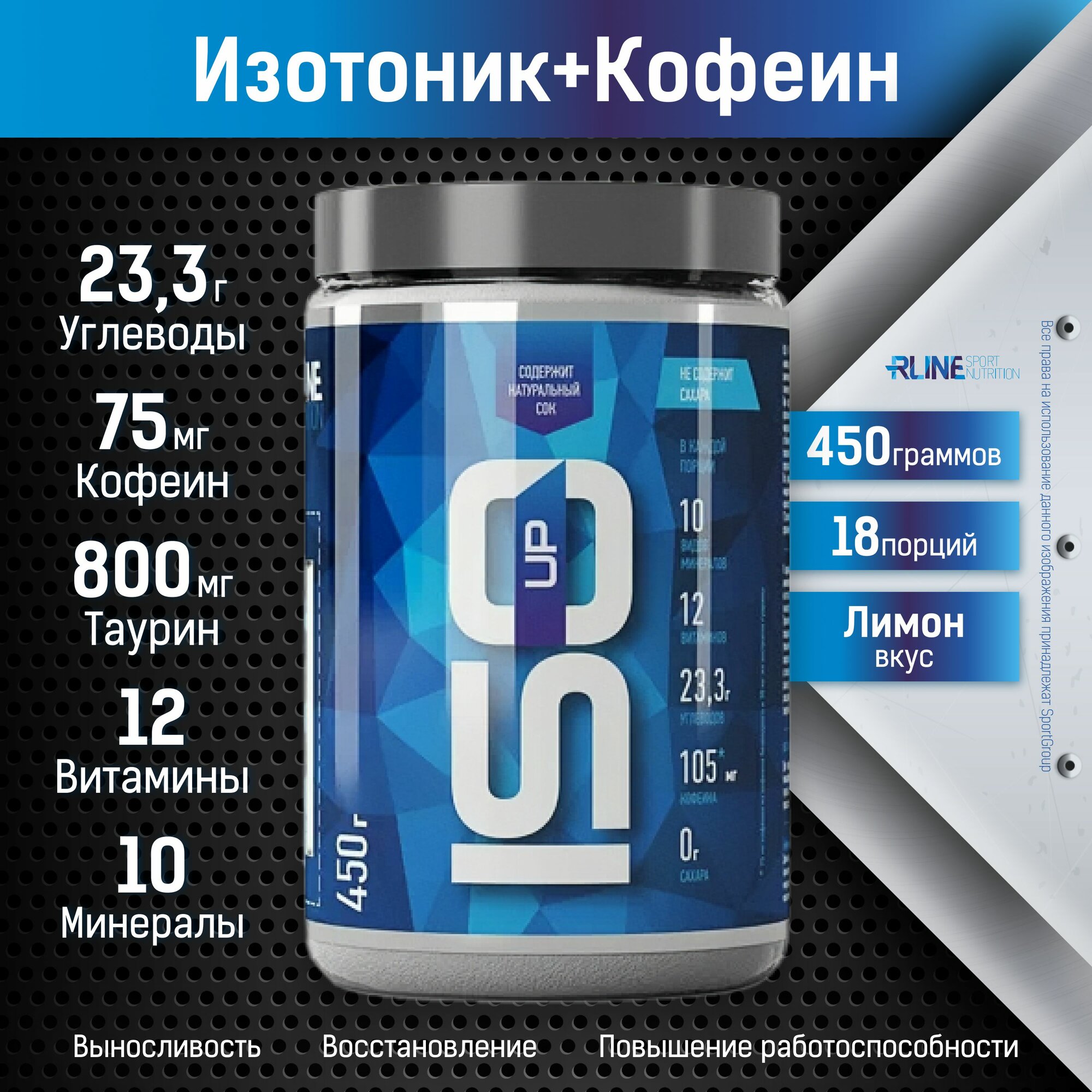 Купить Изотоник с кофеином, таурином и гуараной RLINE ISO UP, Лимон, 450 г