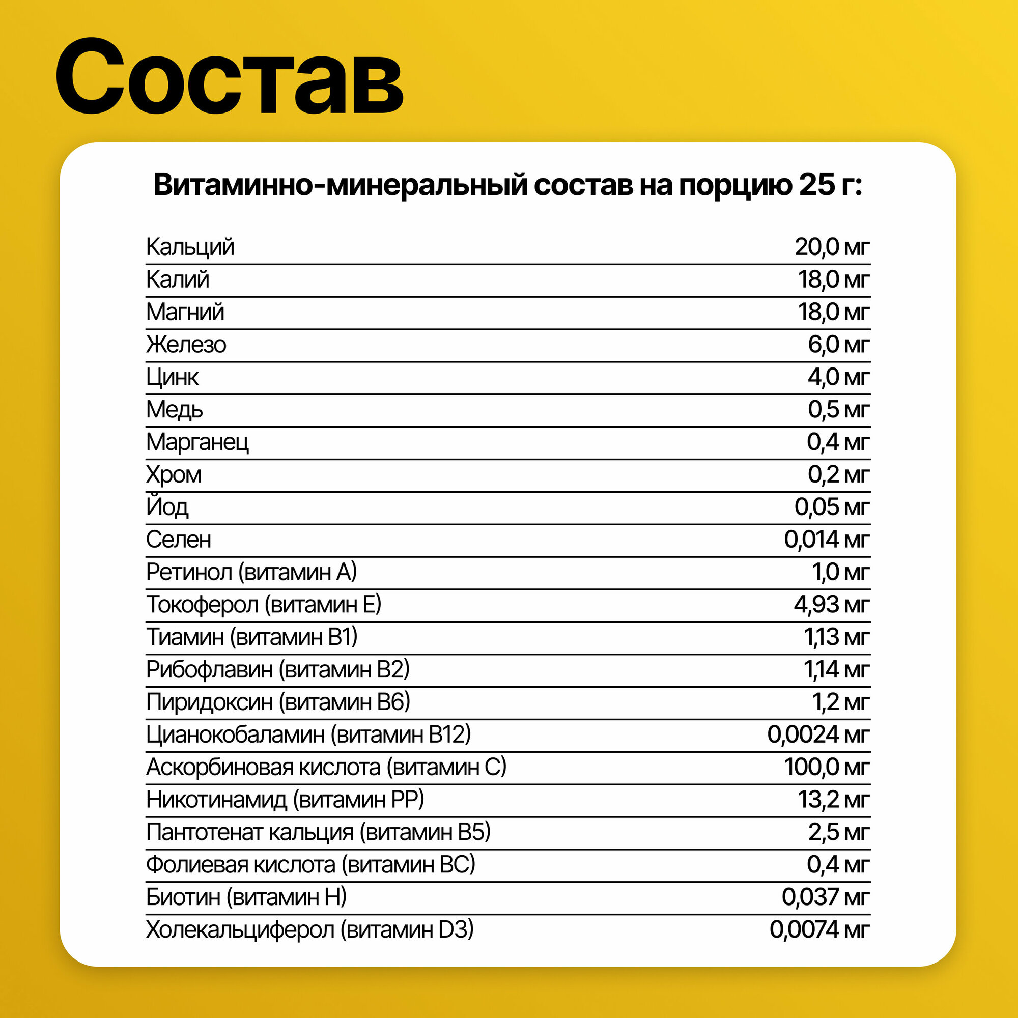 | Основные ингредиенты | витамины и минералы |