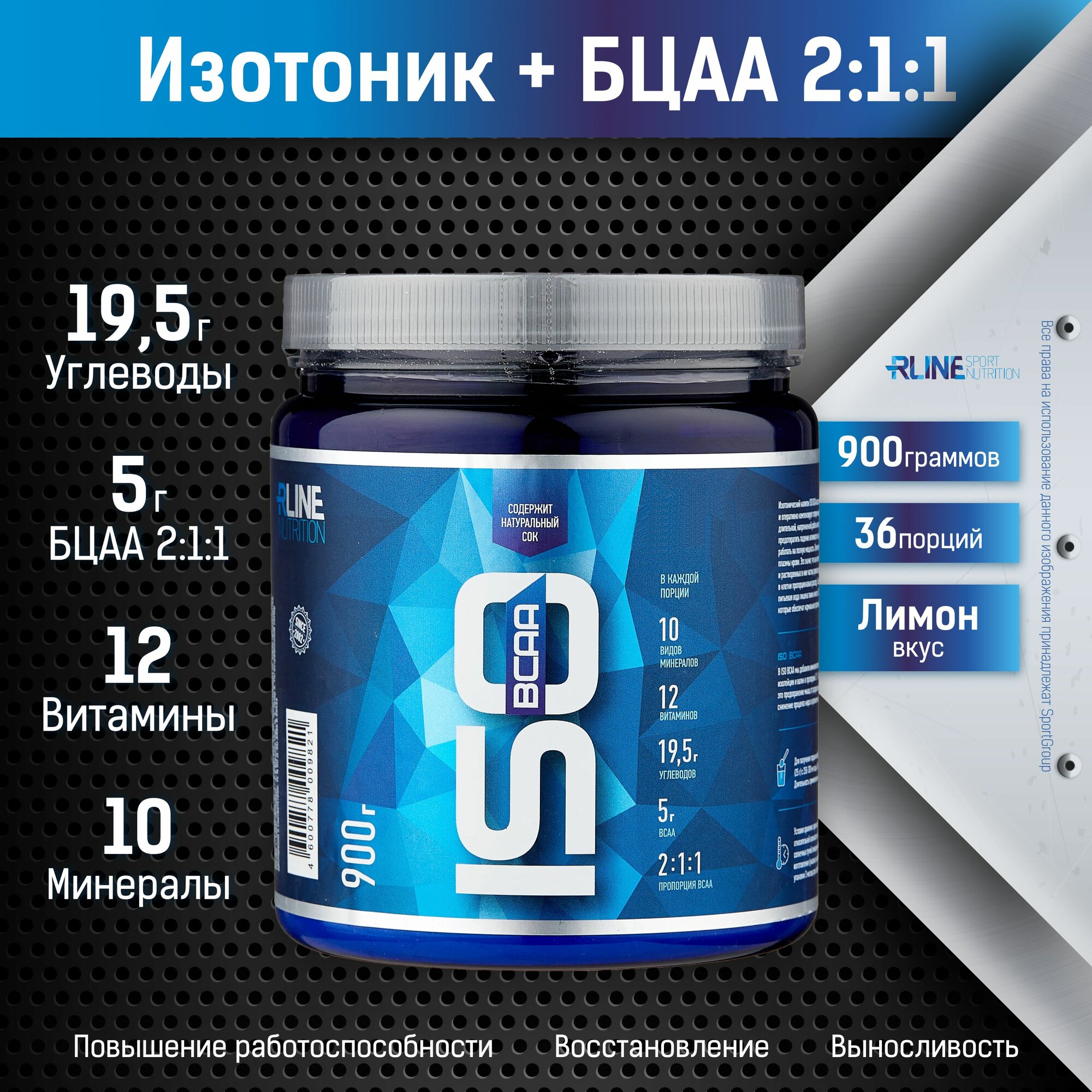 Изотоник с аминокислотами БЦАА RLINE ISO BCAA, Лимон, 2000 г
