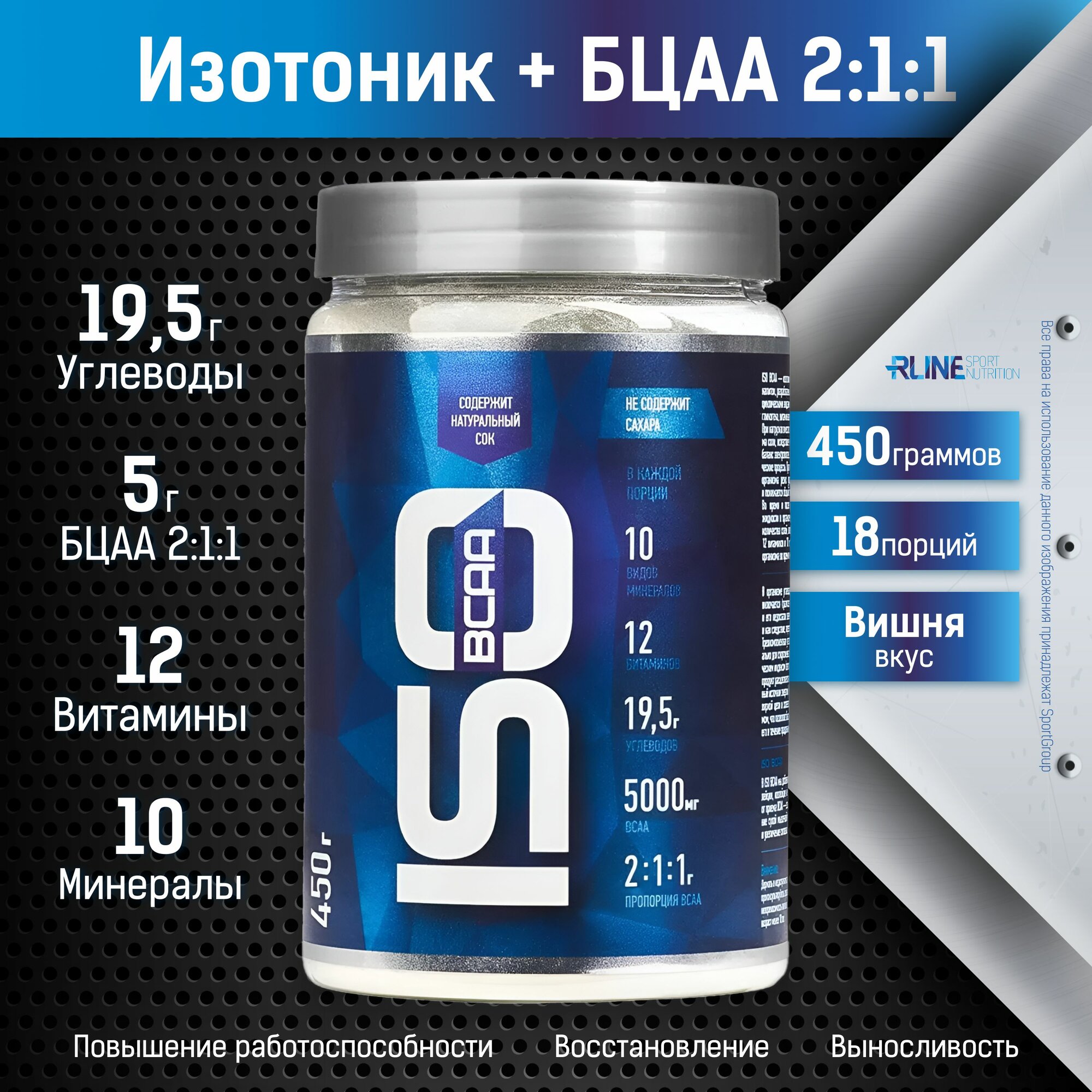 СохранитьИзотоник с аминокислотами БЦАА RLINE Nutrition ISO BCAA, Вишня, 450 г интересное: