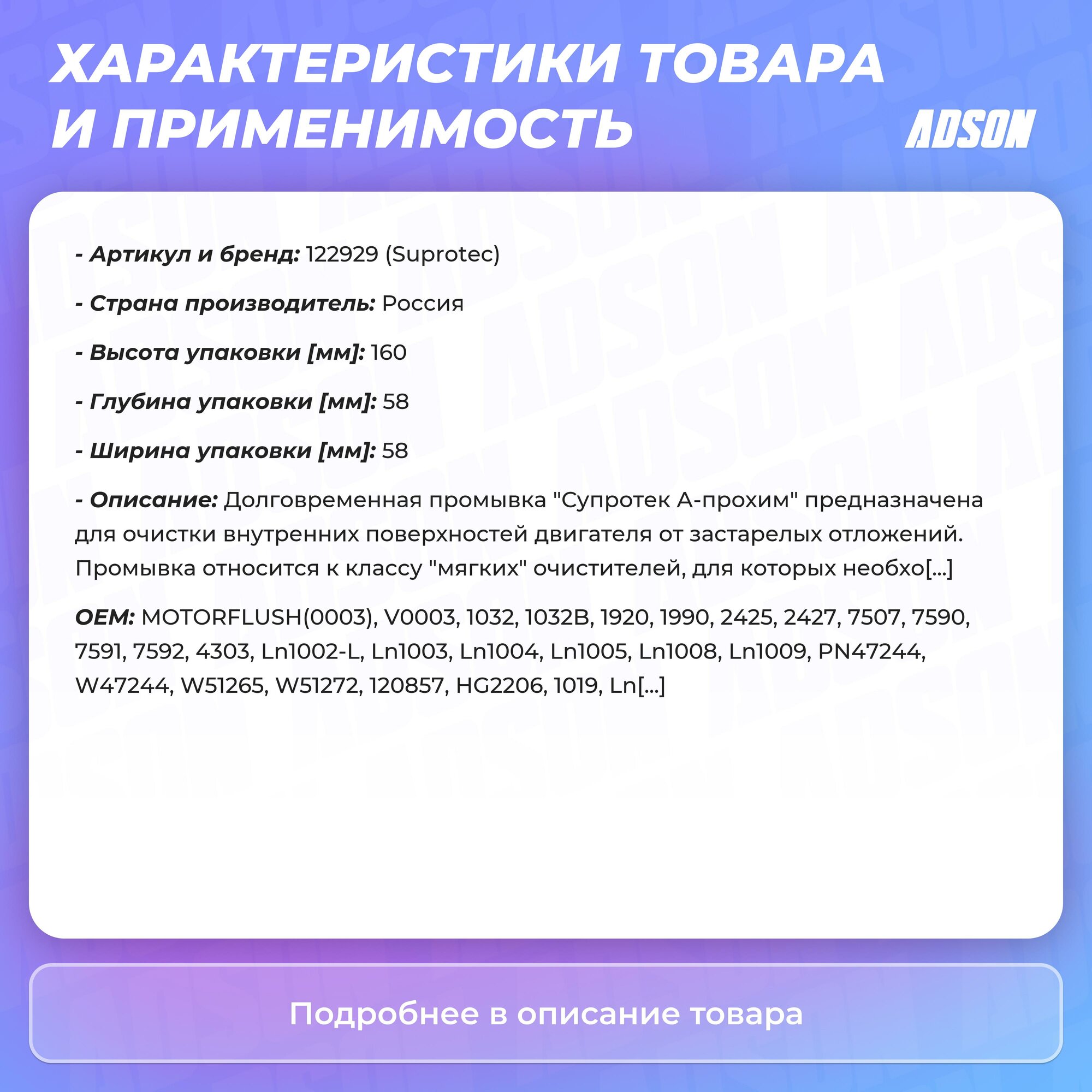 Suprotec, Долговременная промывка двигателя, 122929 .