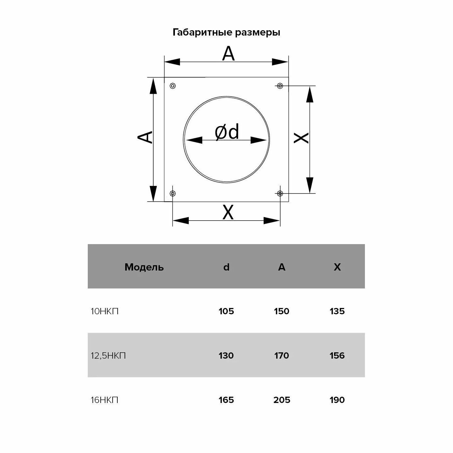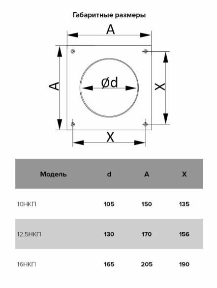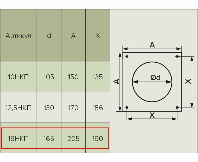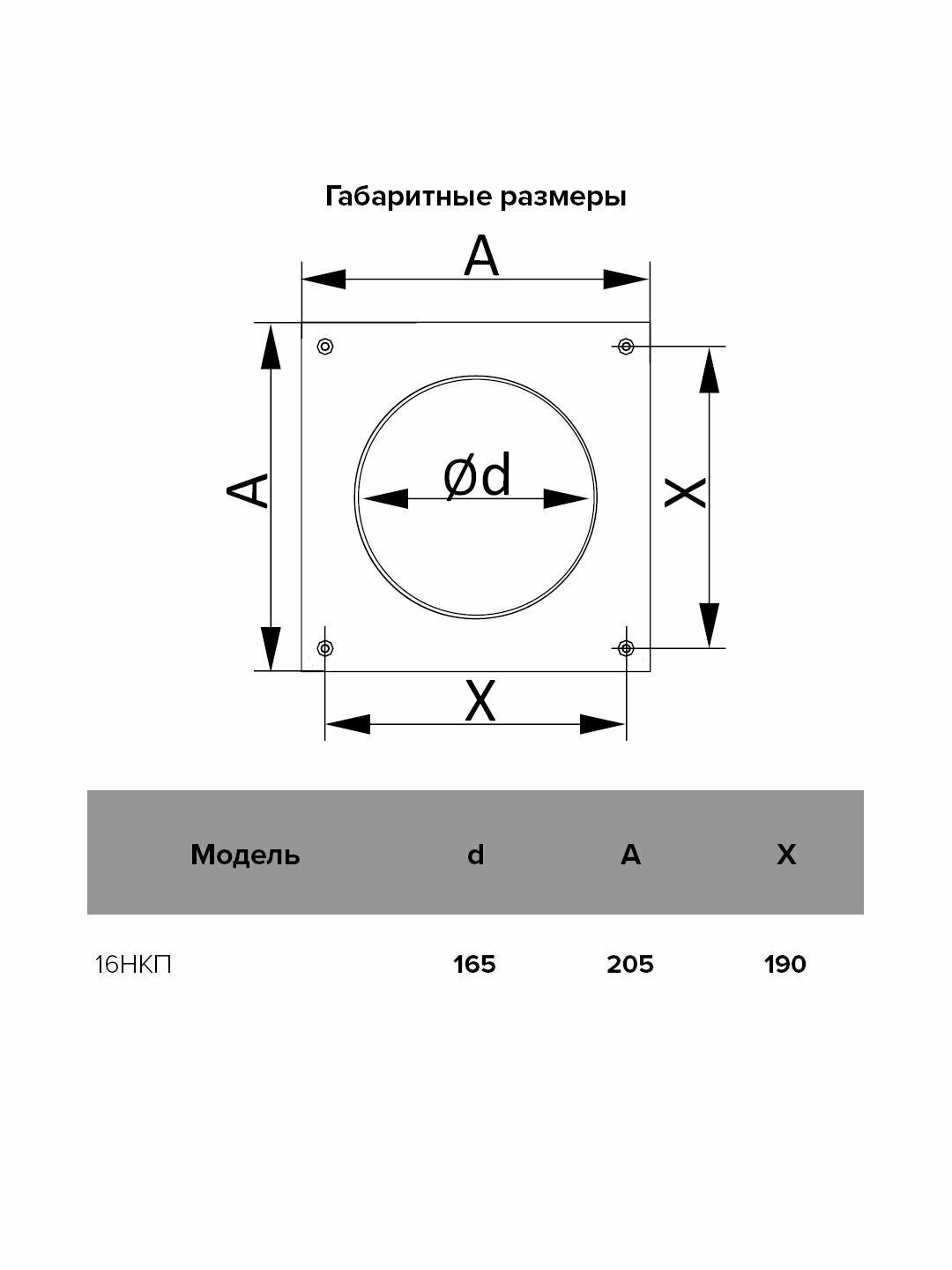 16НКП, Накладка торцевая пластик 205х205, для воздуховода D160