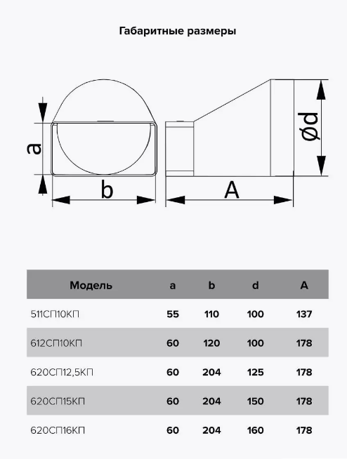 Переход ERA 620СП12,5КП 125 мм 60 мм 204 мм(60х204)