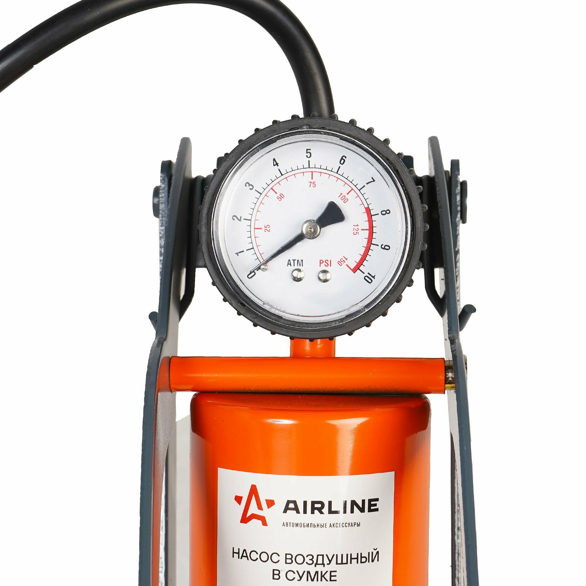 Купить Насос ножной с манометром, в сумке, Fe, насадки, 320 см3, 8 атм AIRLINE PA-300-01