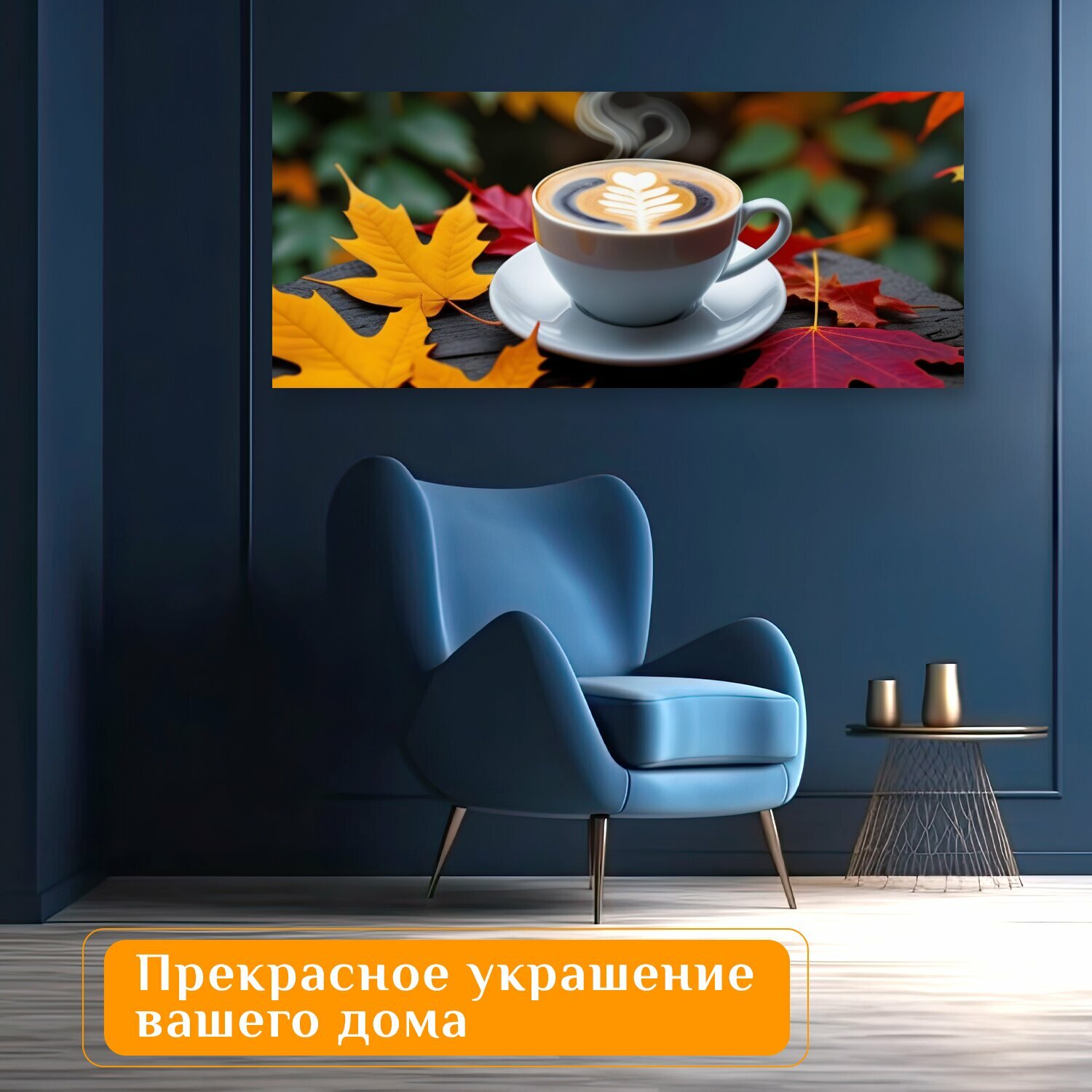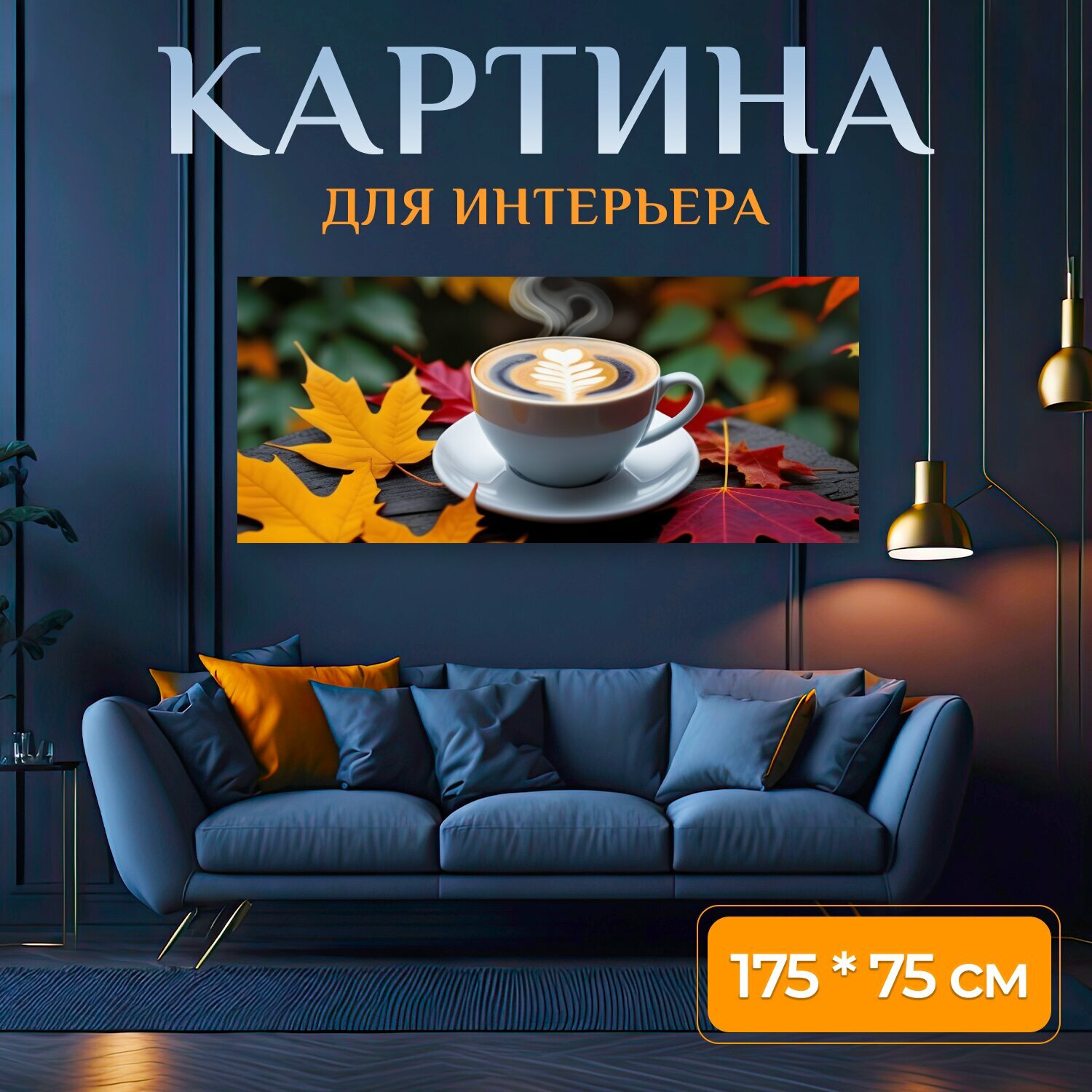 Купить Картина на холсте "Чашка кофе с уютом среди осенних листв , " на подрамнике 175х75 см. для интерьера