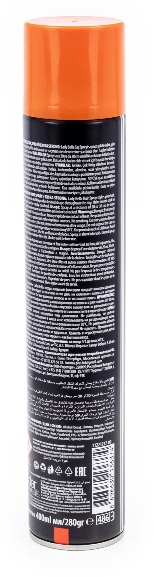 Lady Bella / Леди Белла Extra Strong Лак для волос экстрасильная фиксация, 400мл / для укладки / стайлинг