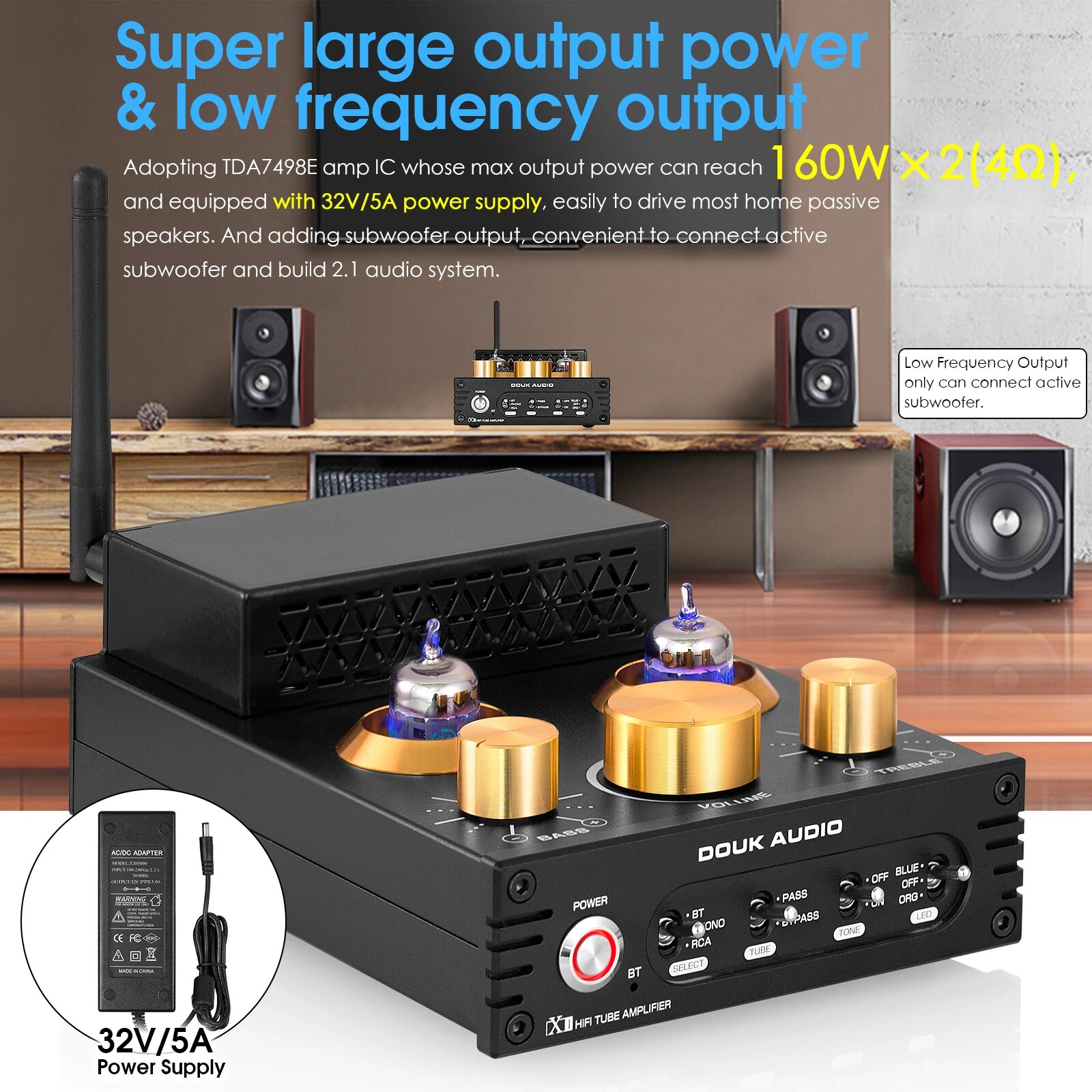 Ламповый усилитель Nobsound HiFi GE5654 с поддержкой Bluetooth, EU Power Adapter интересное: