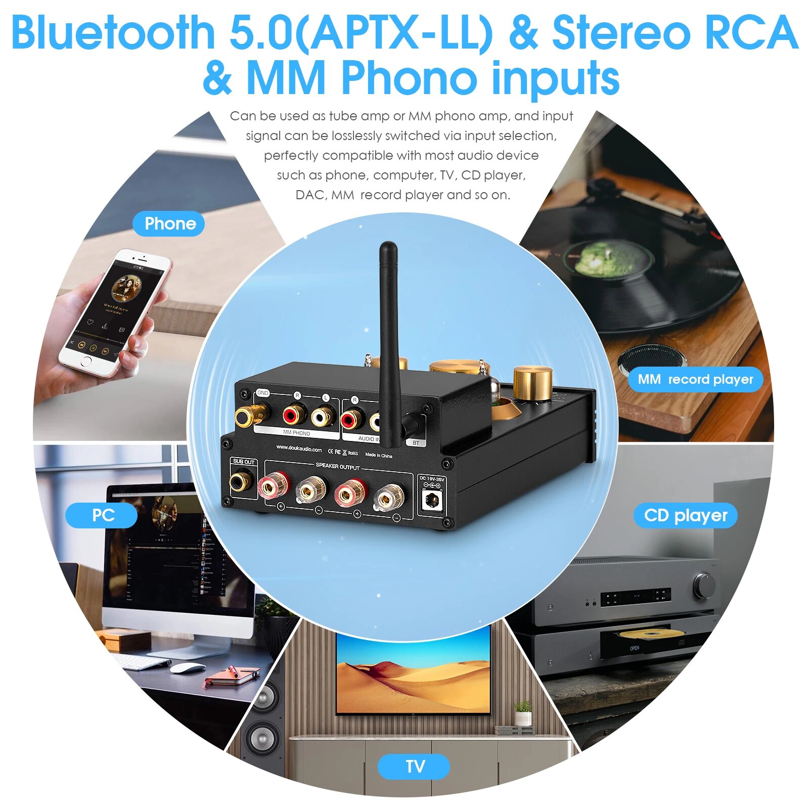 Ламповый усилитель Nobsound HiFi GE5654, стерео, Bluetooth 5,0, мм, для поворотных столов APTX-HD, 160 Вт + 160 Вт