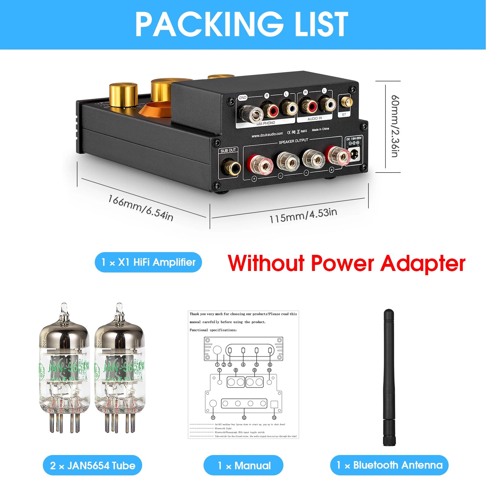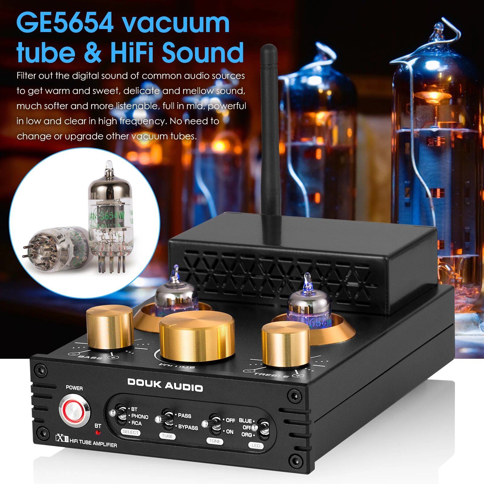 Ламповый усилитель Nobsound HiFi GE5654 с поддержкой Bluetooth, Without Power Supply