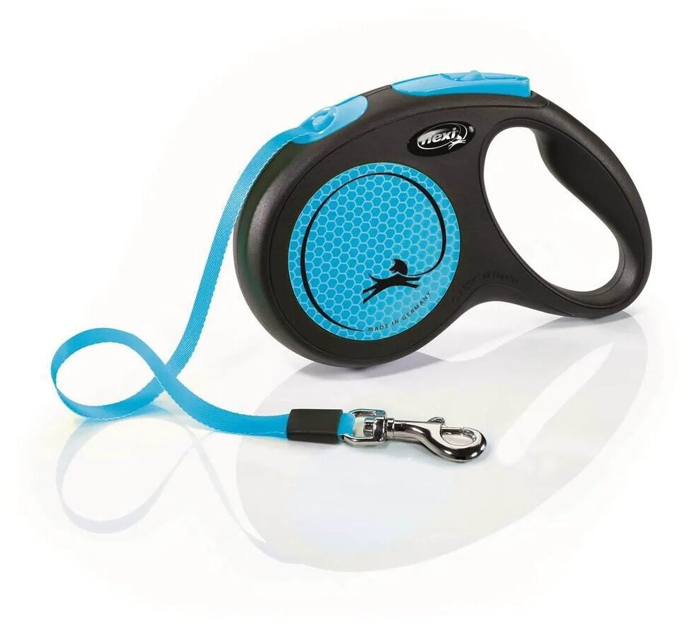 Поводок-рулетка Neon New Classic M (до 25 кг) лента 5 м, светоотражающая, голубой неон