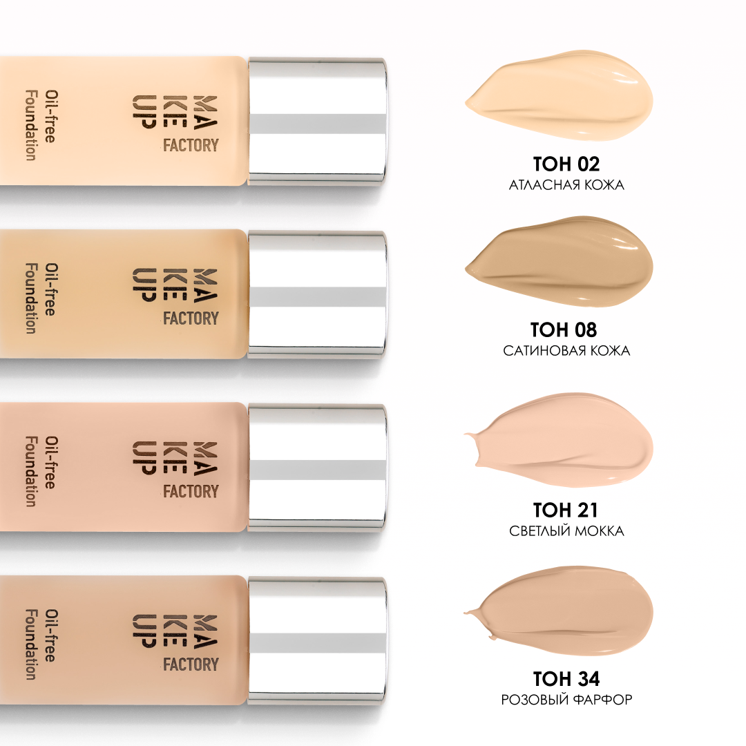 Make up Factory Тональный крем для лица увлажняющий матирующий OIL-FREE №02, атласная кожа