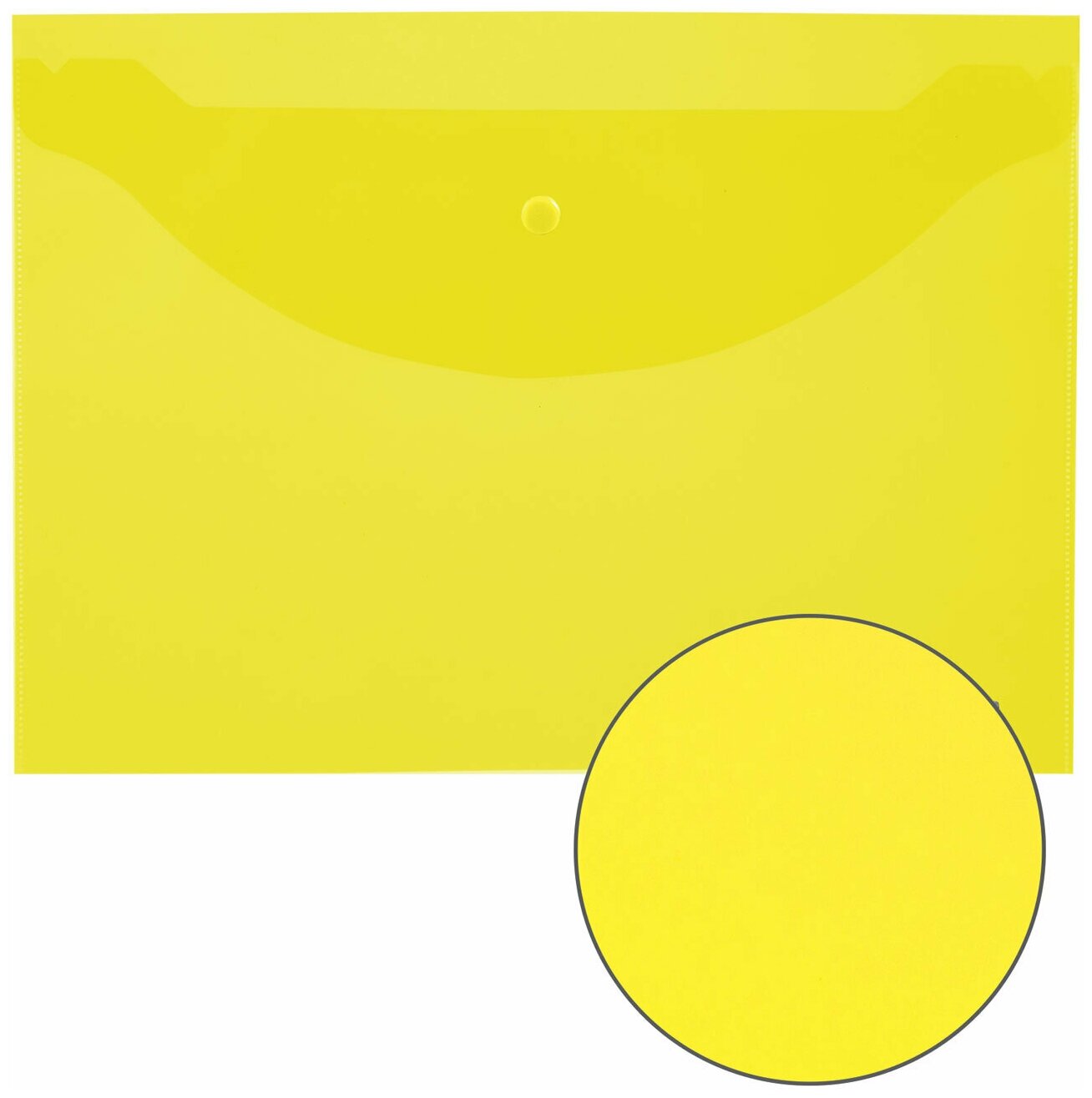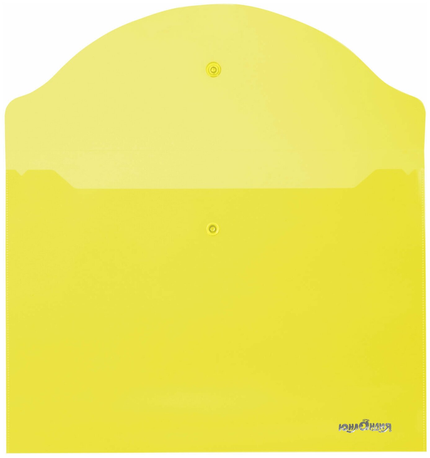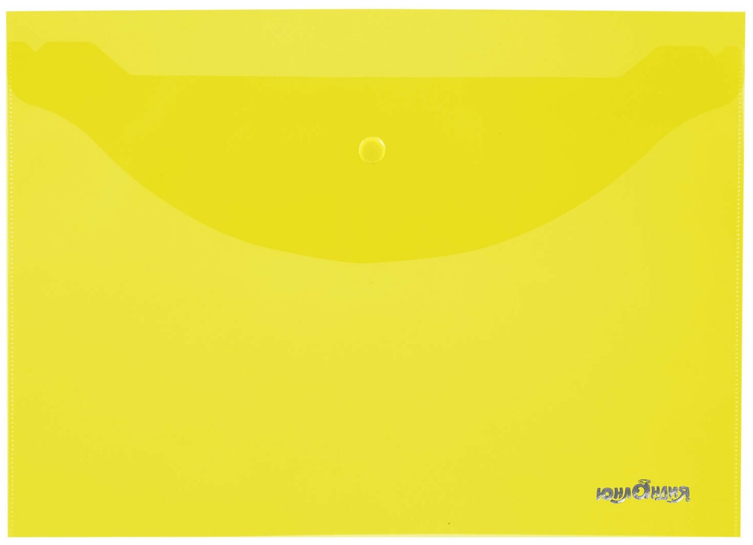 Купить Папка-конверт с кнопкой юнландия, А4, до 100 листов, прозрачная, желтая, 0,18 мм, 228668, 7 штук