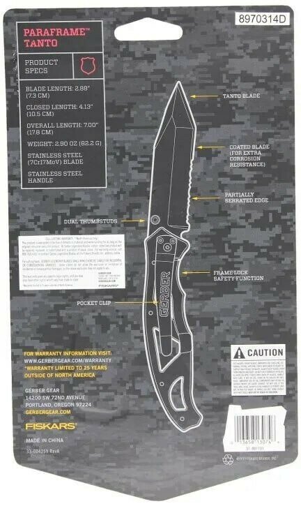 Купить Складной туристический нож Gerber Paraframe I Tanto 31-003628 с серрейтором, нержавеющая сталь