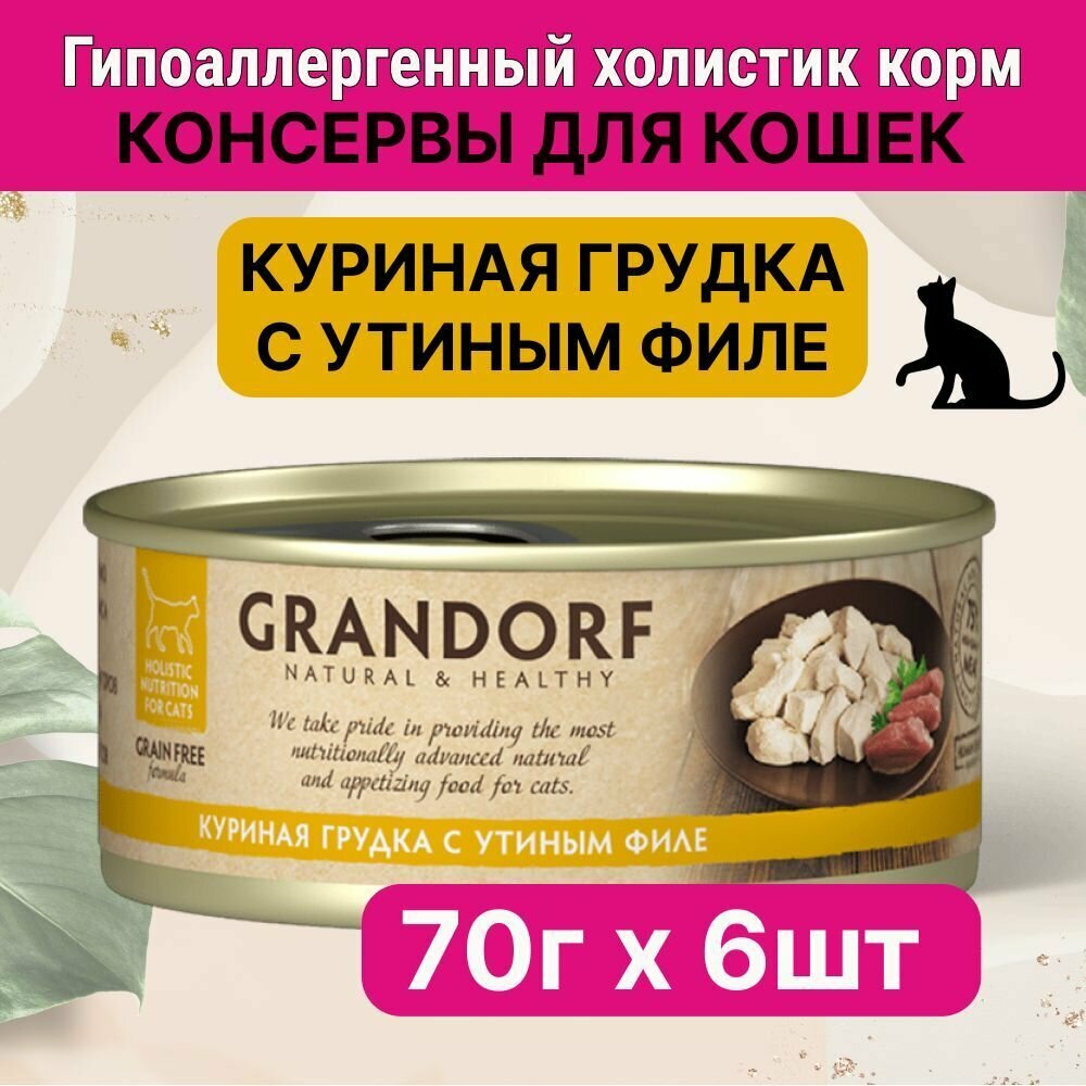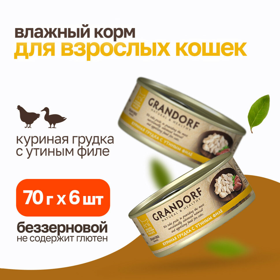 GRANDORF CAT для взрослых кошек с куриной грудкой и утиным филе (70 гр х 6 шт)