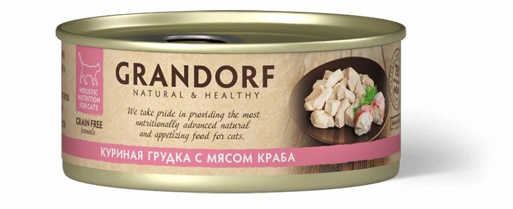 Влажный корм Grandorf консервы для кошек, Куриная грудка с мясом краба, 70 г. х 6 шт.
