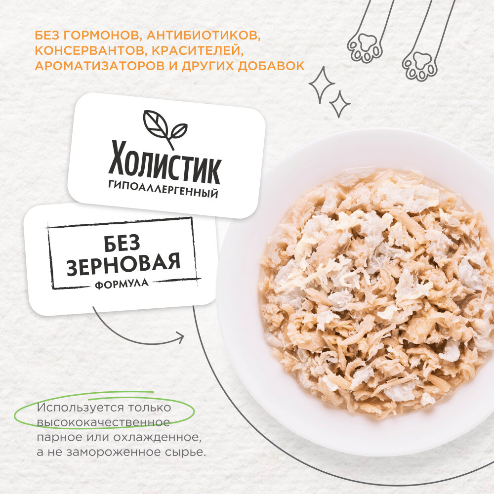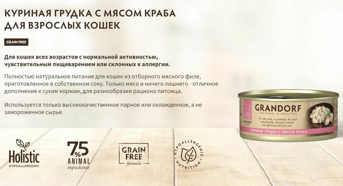 Консервы для кошек Grandorf Holistic Куриная грудка с мясом краба,упаковка 70 гр х 6шт.