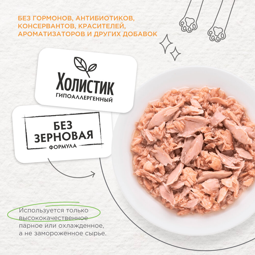 Grandorf Holistic Nutrition For Cat Grain Free влажные корма для котят и кошек холистик, филе тунца 6 банок х 70 гр