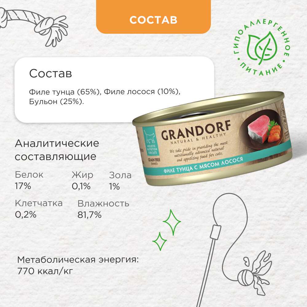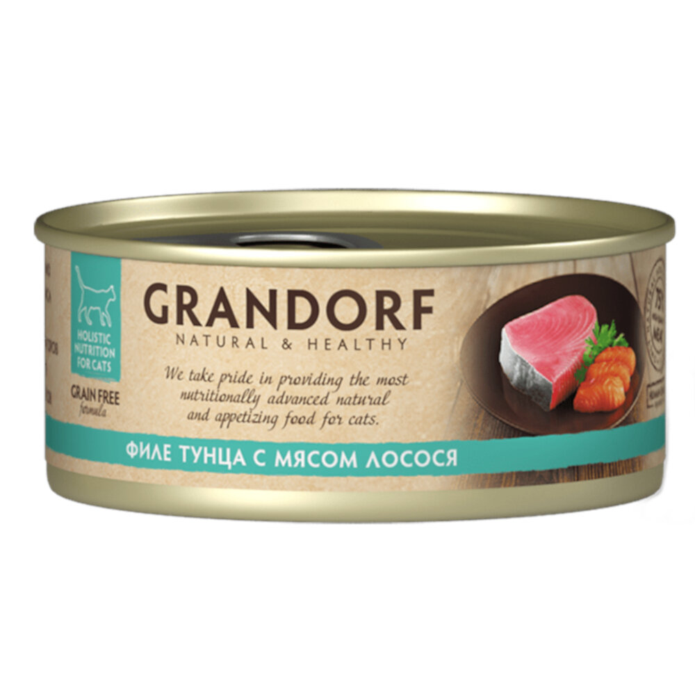 Купить Консервы для кошек GRANDORF Филе тунца с лососем для всех возрастов 70 г