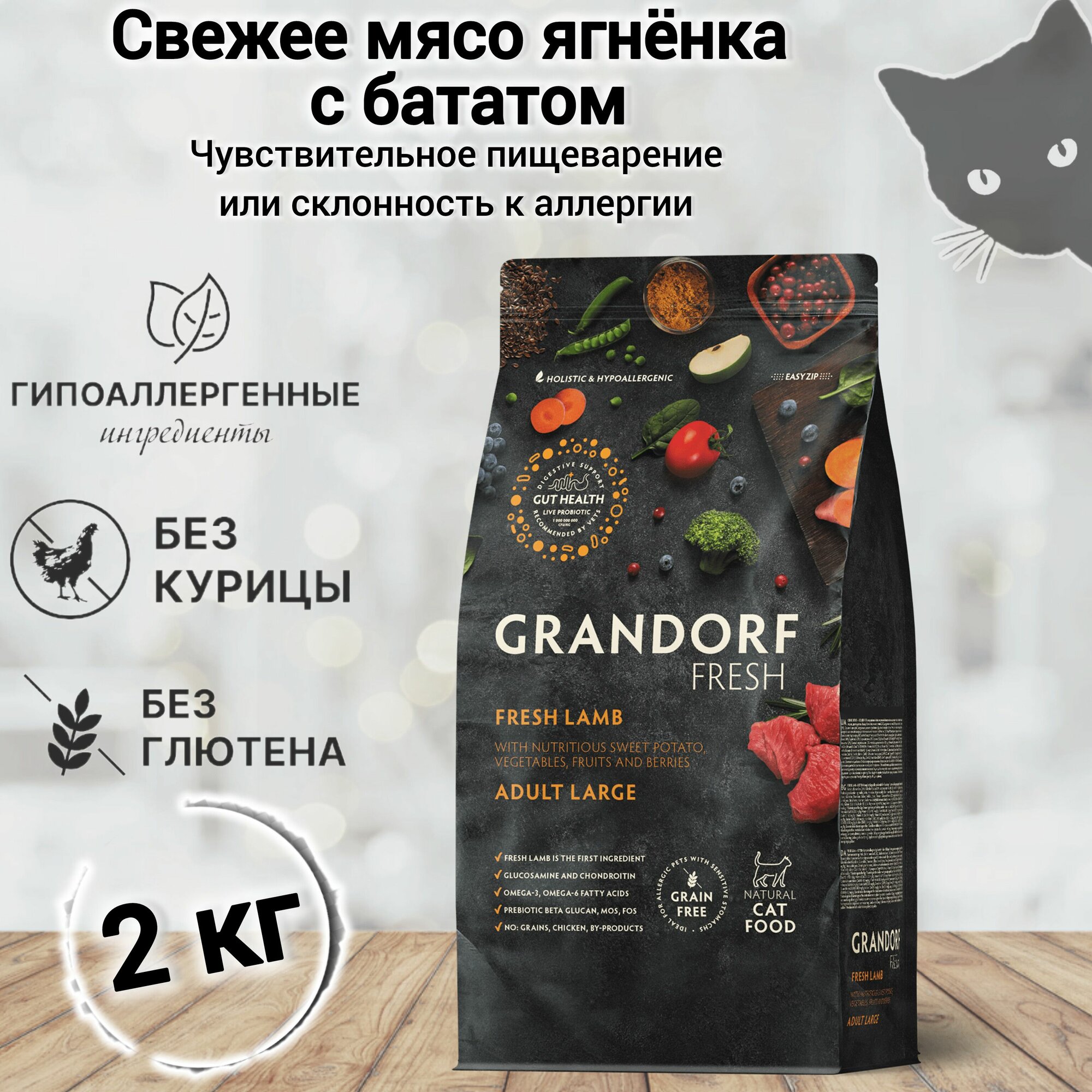 Купить Корм сухой для кошек Grandorf FRESH Cat LARGE Lamb&Sweet Potato (Свежее мясо ягненка с бататом для кошек крупных пород) 2 кг.