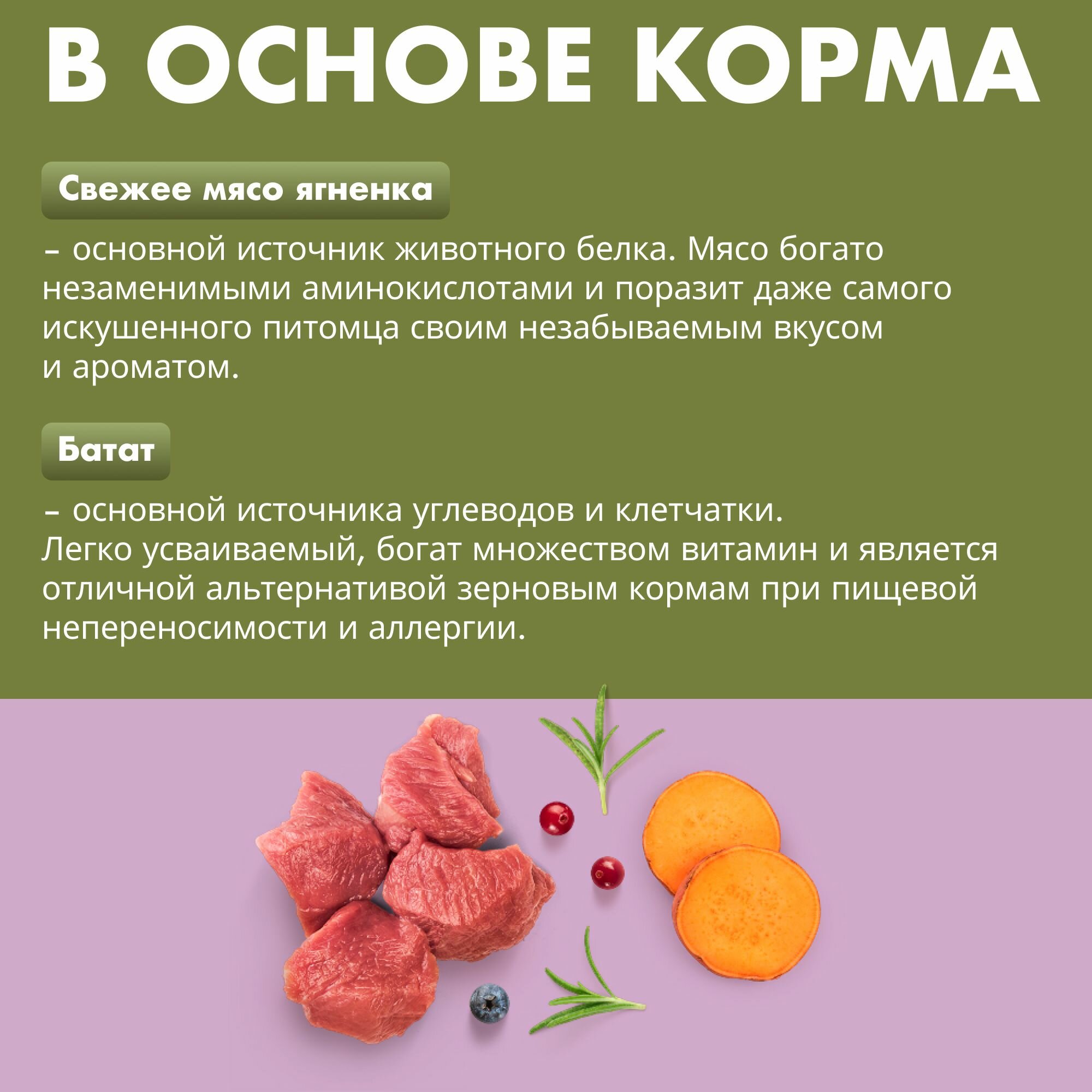 Grandorf Беззерновой корм с живыми пробиотиками: свежее мясо ягненка с бататом для кошек крупных пород, 2кг.
