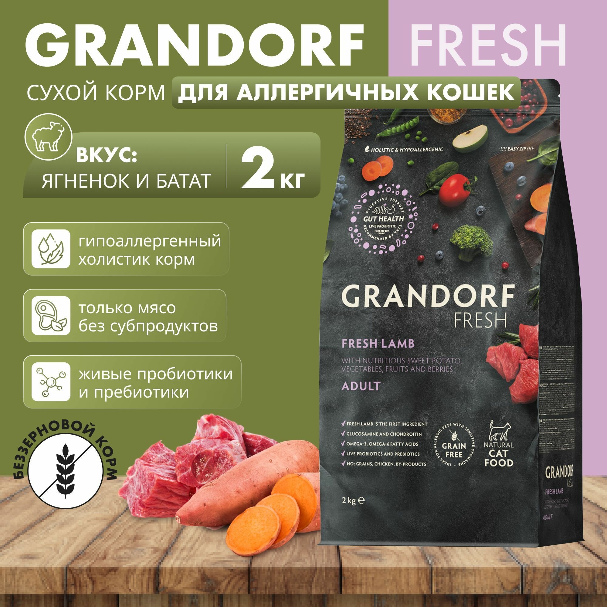 Купить Корм сухой Grandorf Fresh для взрослых кошек с ягненком и бататом, 2кг